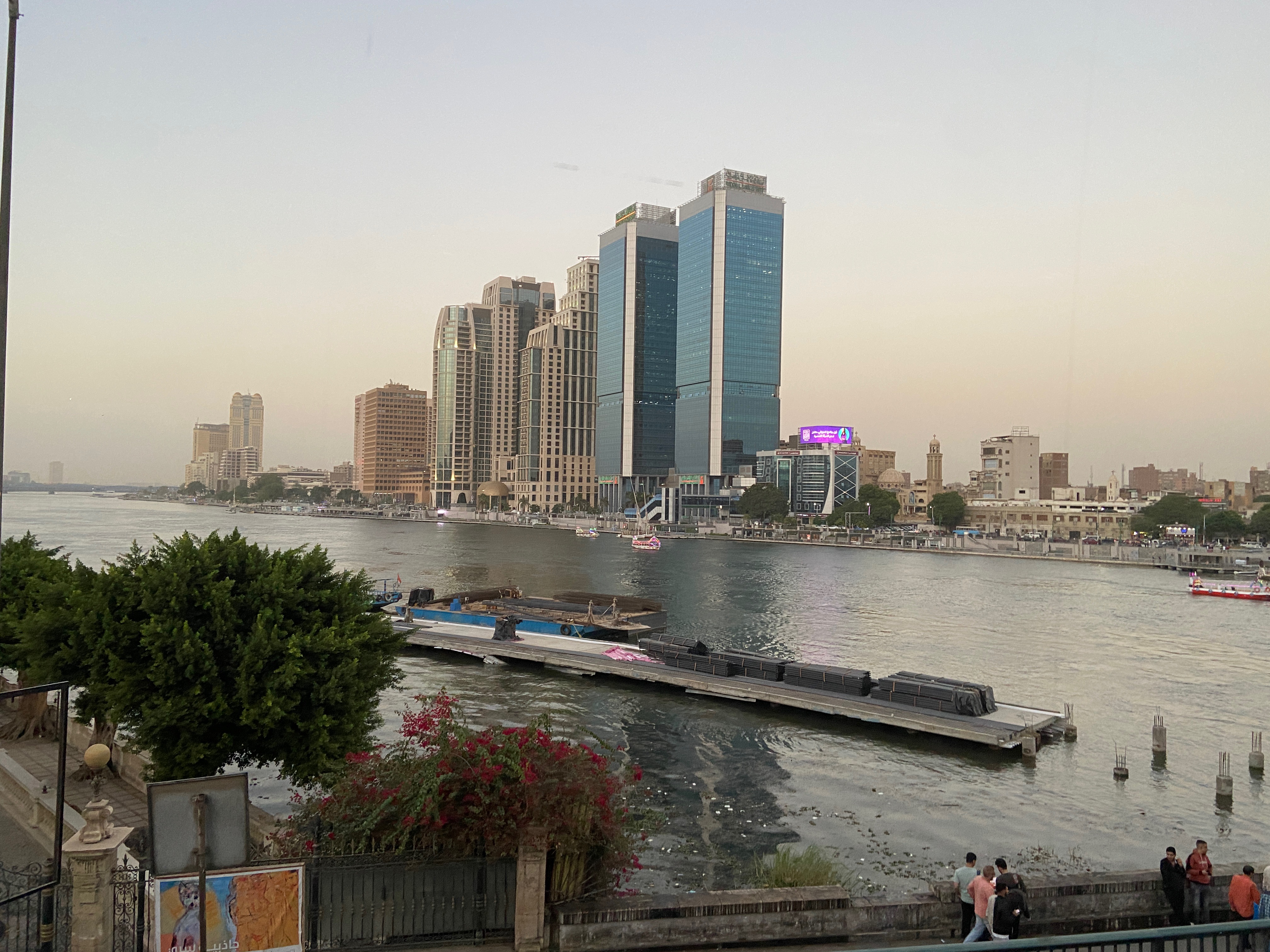 El Nilo a su paso por el Cairo. El Nilo es el río más largo del continente africano y el segundo más largo del mundo tras el Amazonas. En la imagen se pueden apreciar edificaciones y rascacielos.