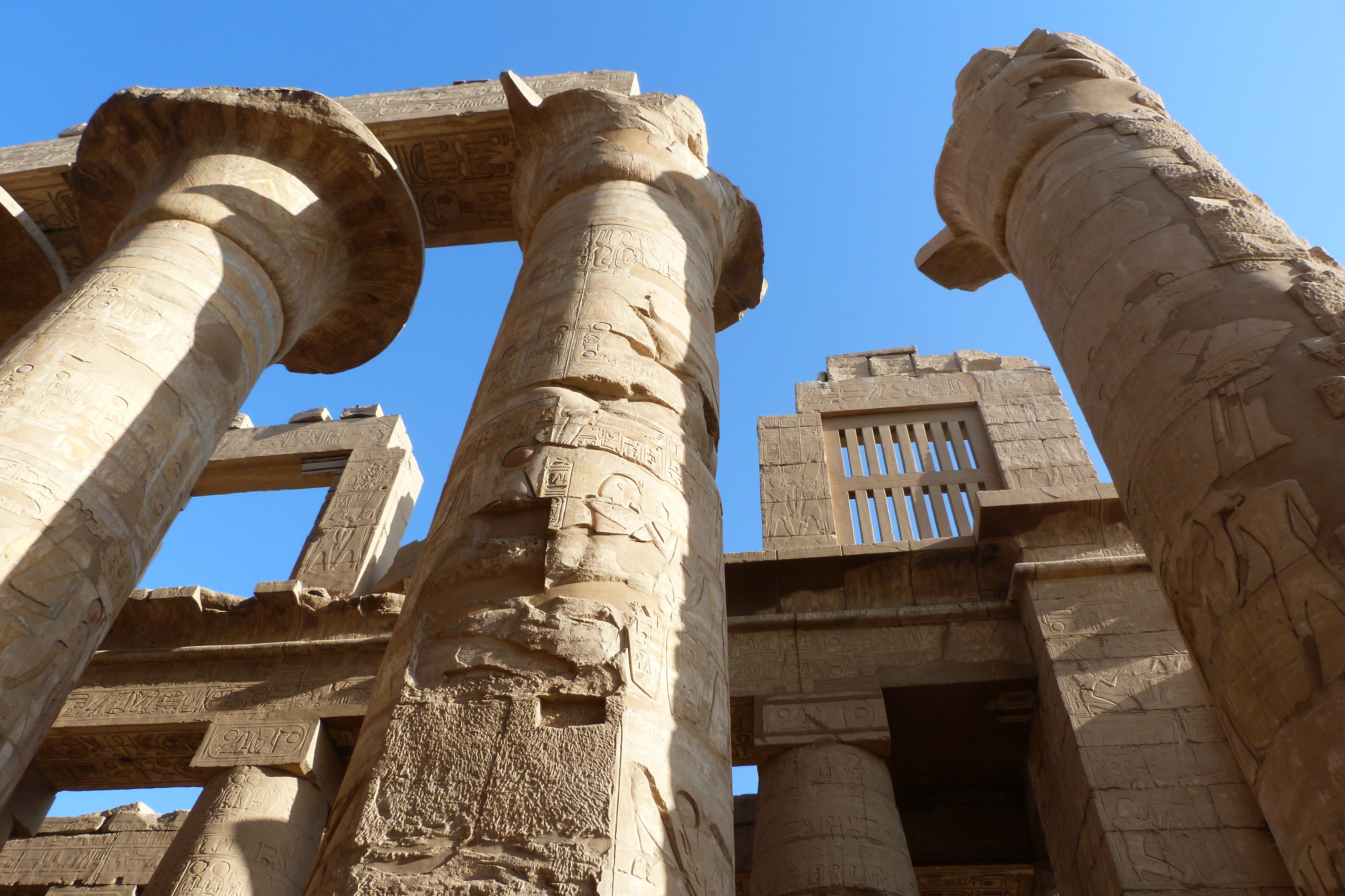Huecograbados en las columnas lotiformes de la sala hipóstila del templo de Karnak.