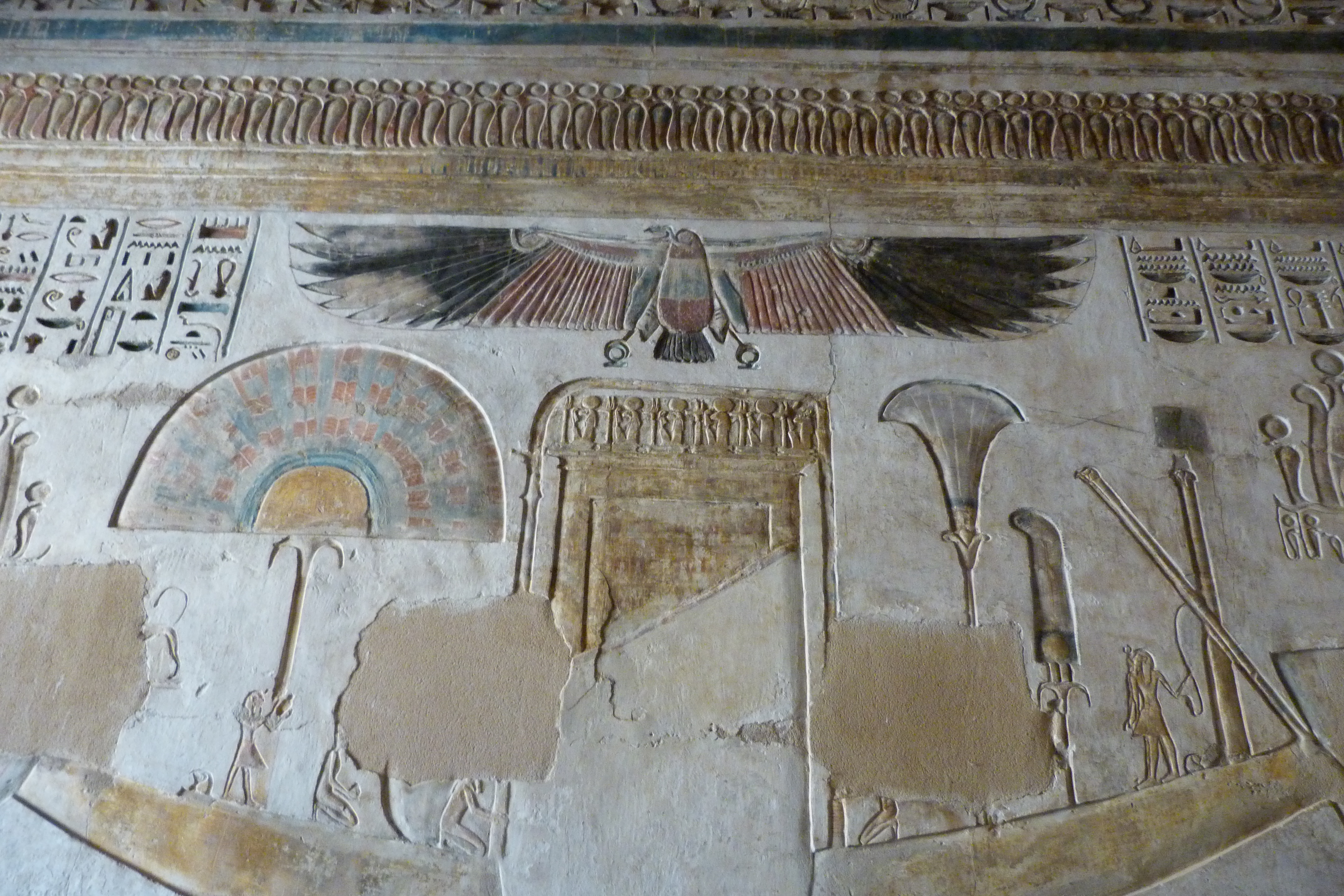 Representación del dios Nejbet diosa protectora, en los nacimientos y en las guerras, según la mitología egipcia. Se encuentra en el segundo patio del templo funerario de Ramsés III en Medinet Habu.