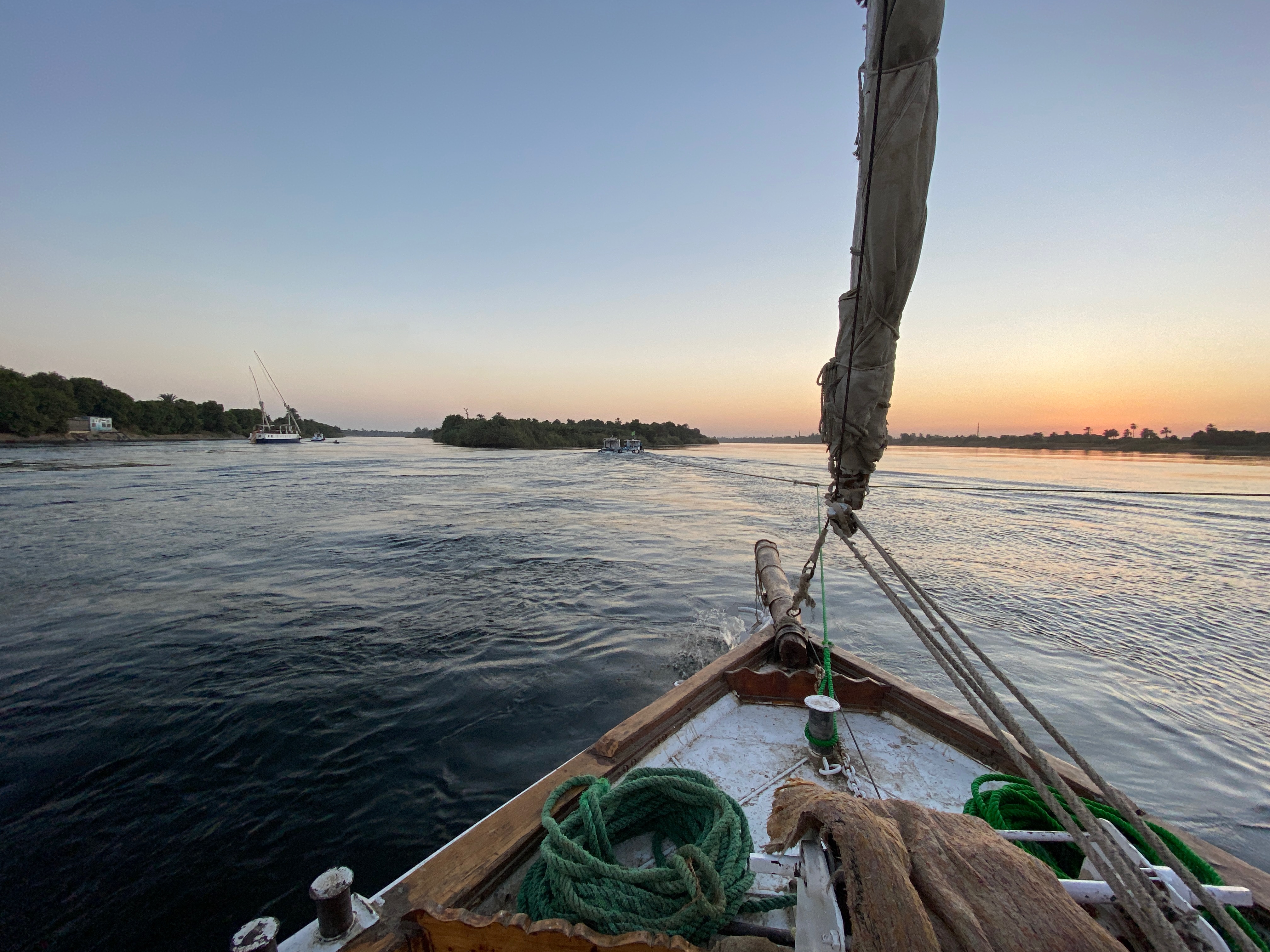 En la imagen se observa el río Nilo, el mayor río de África. La imagen fue tomada mientras se navegaba por sus aguas.
