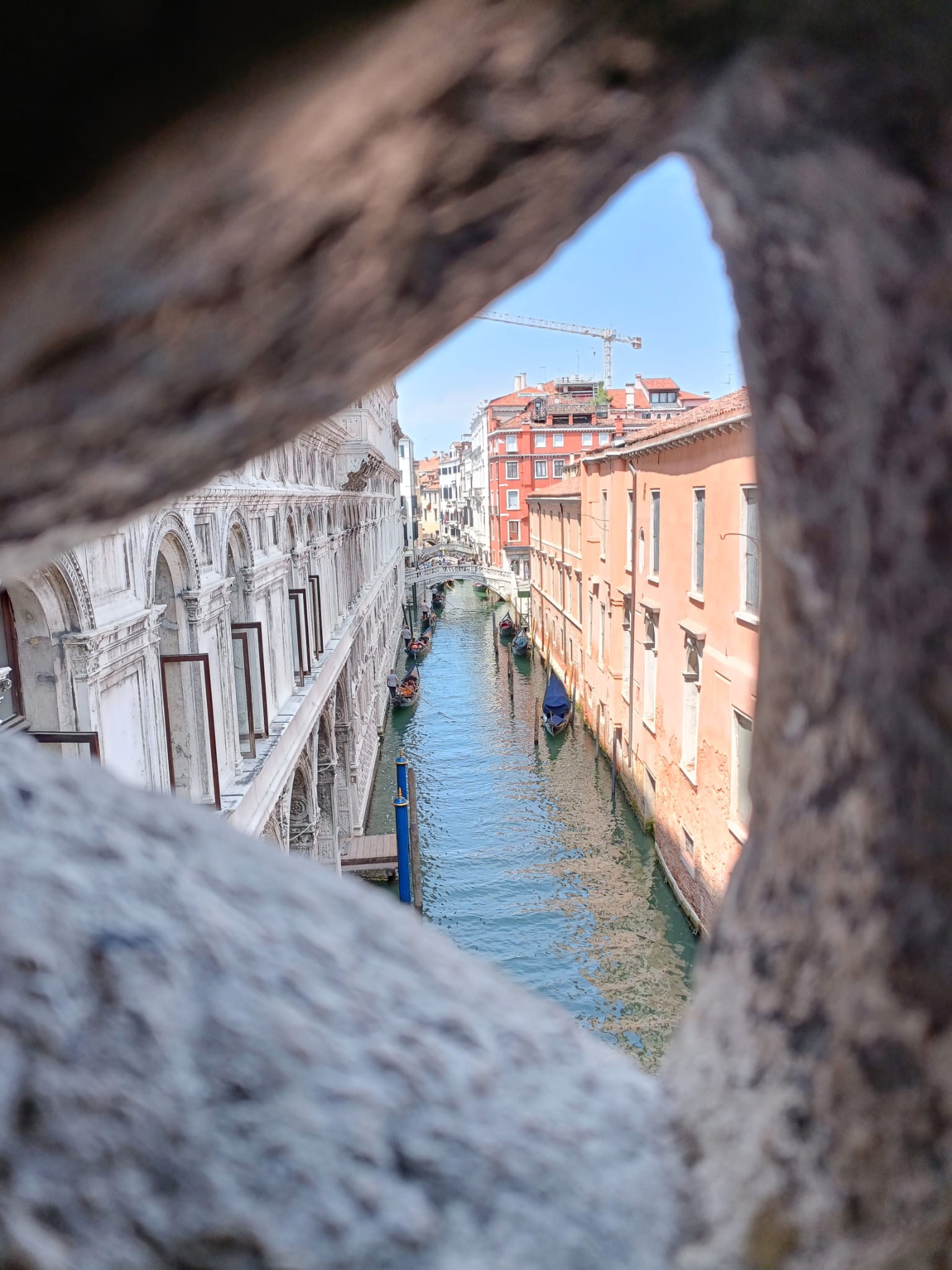 Vista desde el interior del famoso puente de los suspiros en venecia, italia.