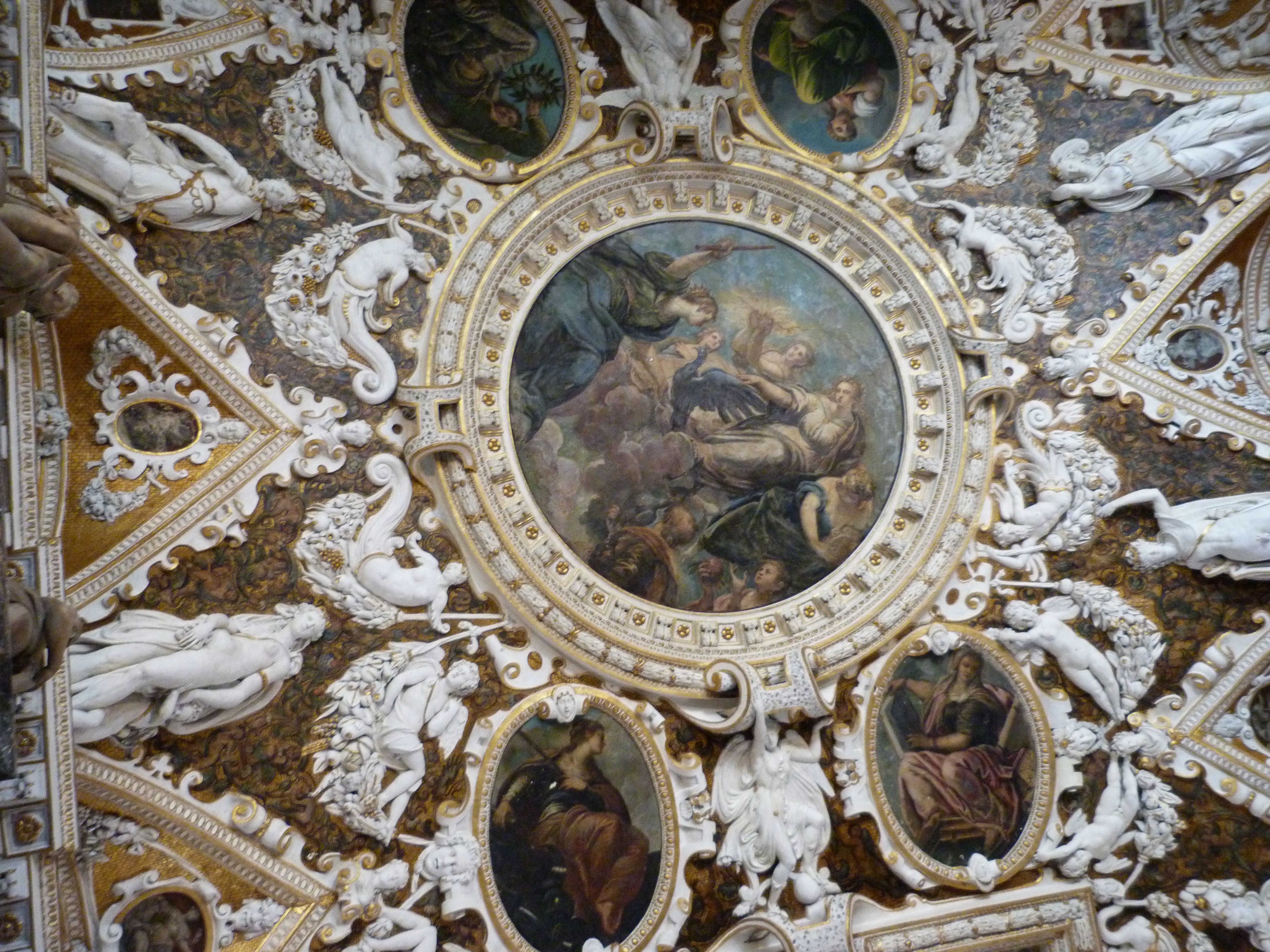 Pintura y escultura en el techo del palacio Ducal.