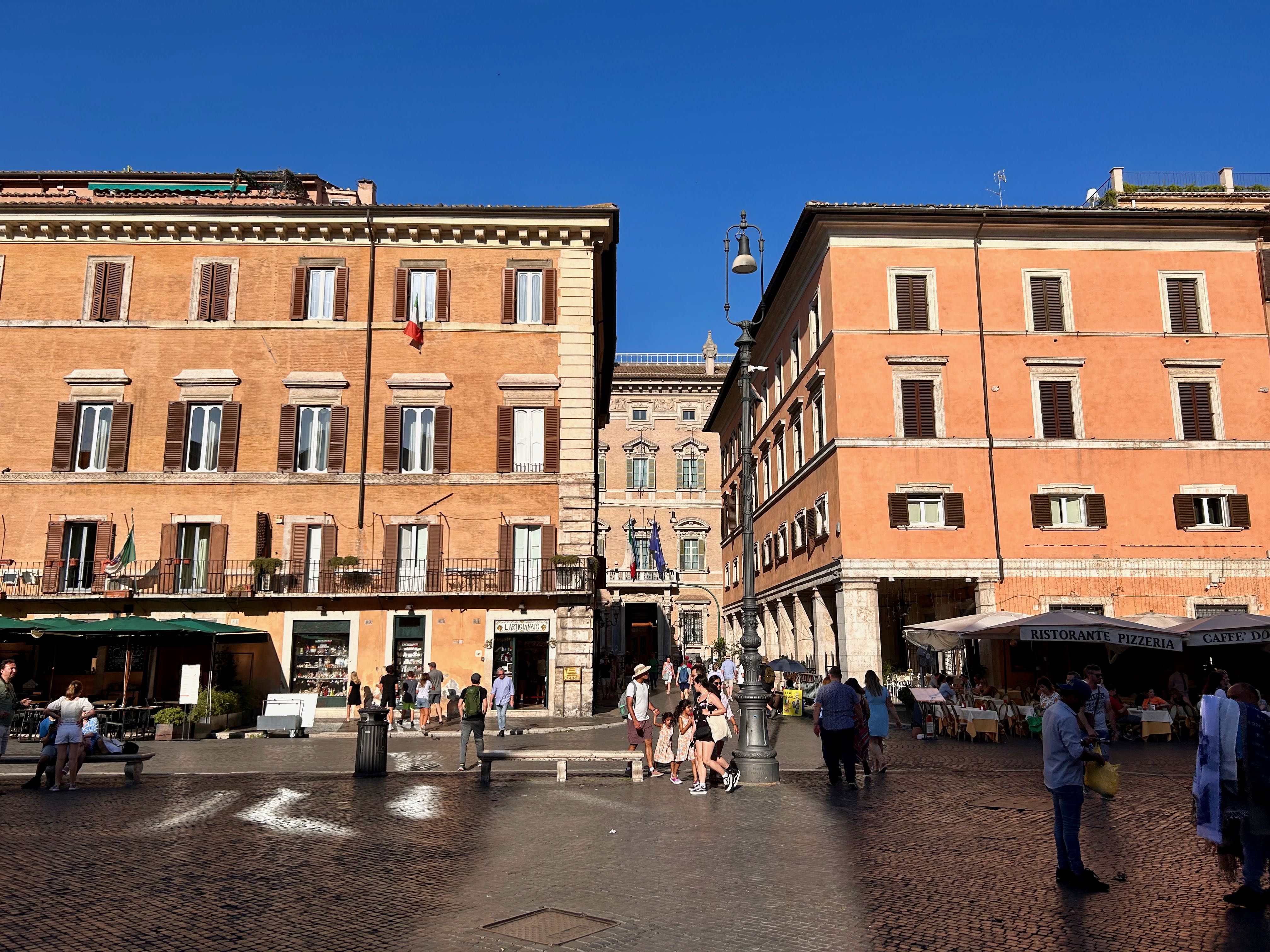Edificios alrededor de la plaza Navona , uno de los espacios urbanos más destacados de Roma siendo un centro de la vida social, cultural y turística de la ciudad.