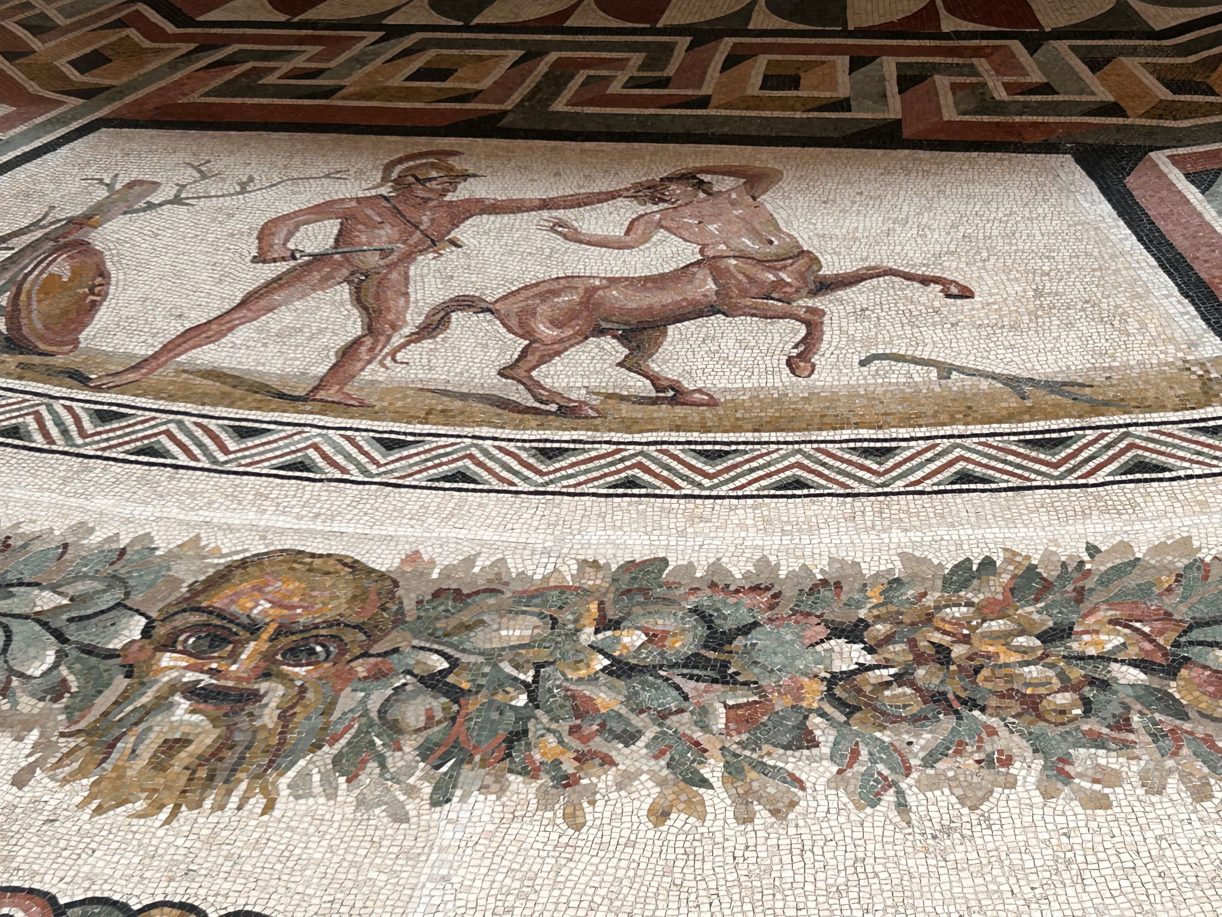 Soldado luchando con centauro. Mosaico ubicado en museo Vaticano.