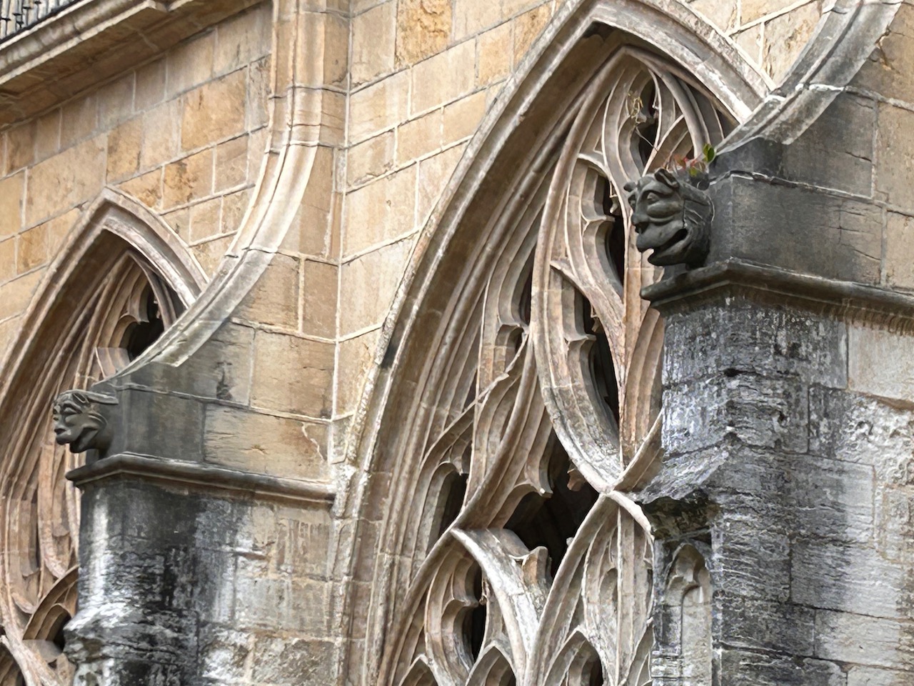Detalle ventanal gótico del claustro de la catedral de Oviedo.