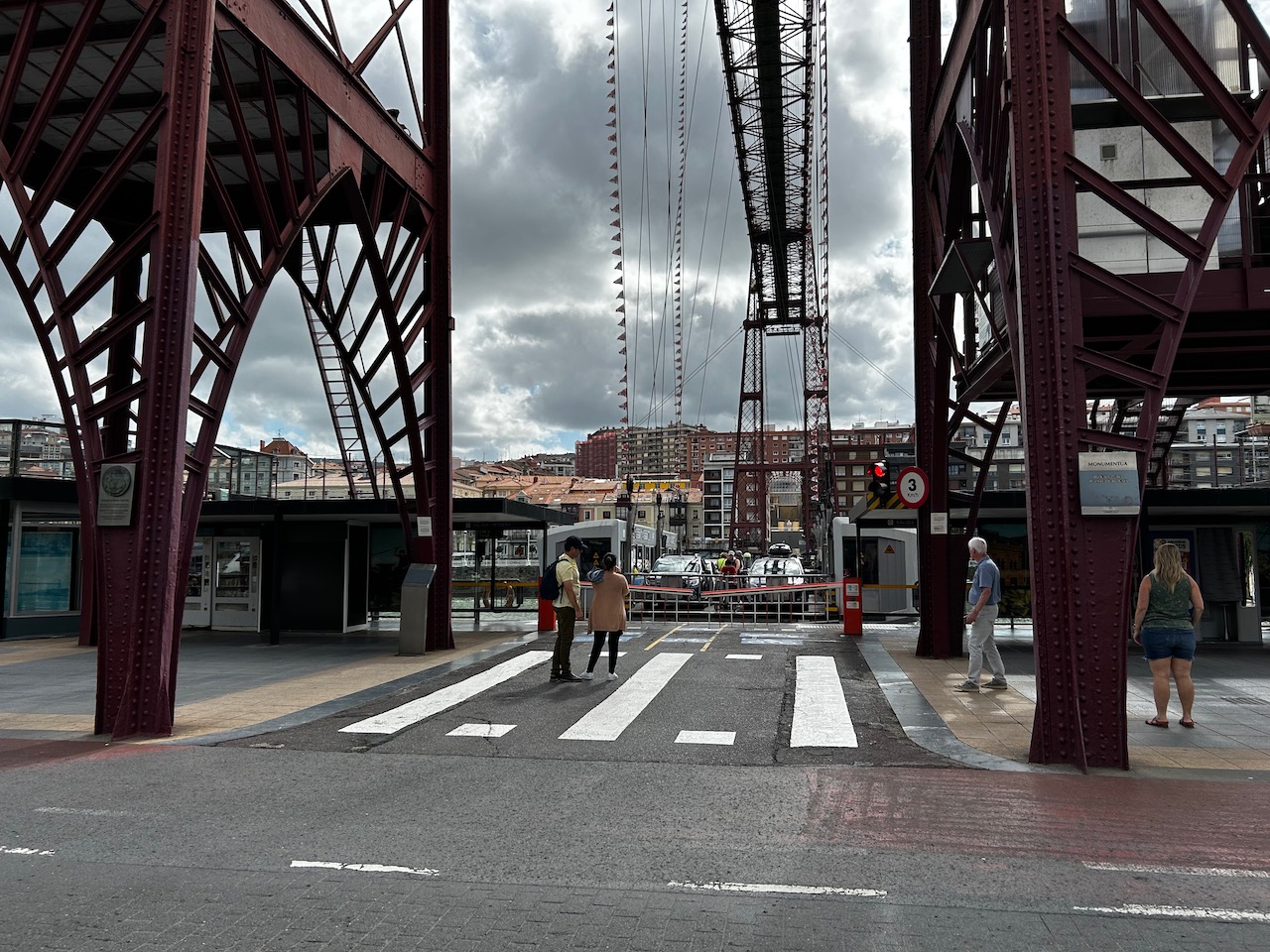 Vista del Puente de Vizcaya, también conocido como Puente Bizkaia, Puente colgante, Puente de Portugalete, o Puente colgante de Portugalete, es un puente transbordador de peaje, concebido, diseñado y construido por iniciativa privada entre 1887 y 1893, que une las dos márgenes de la ría de Bilbao en Vizcaya.