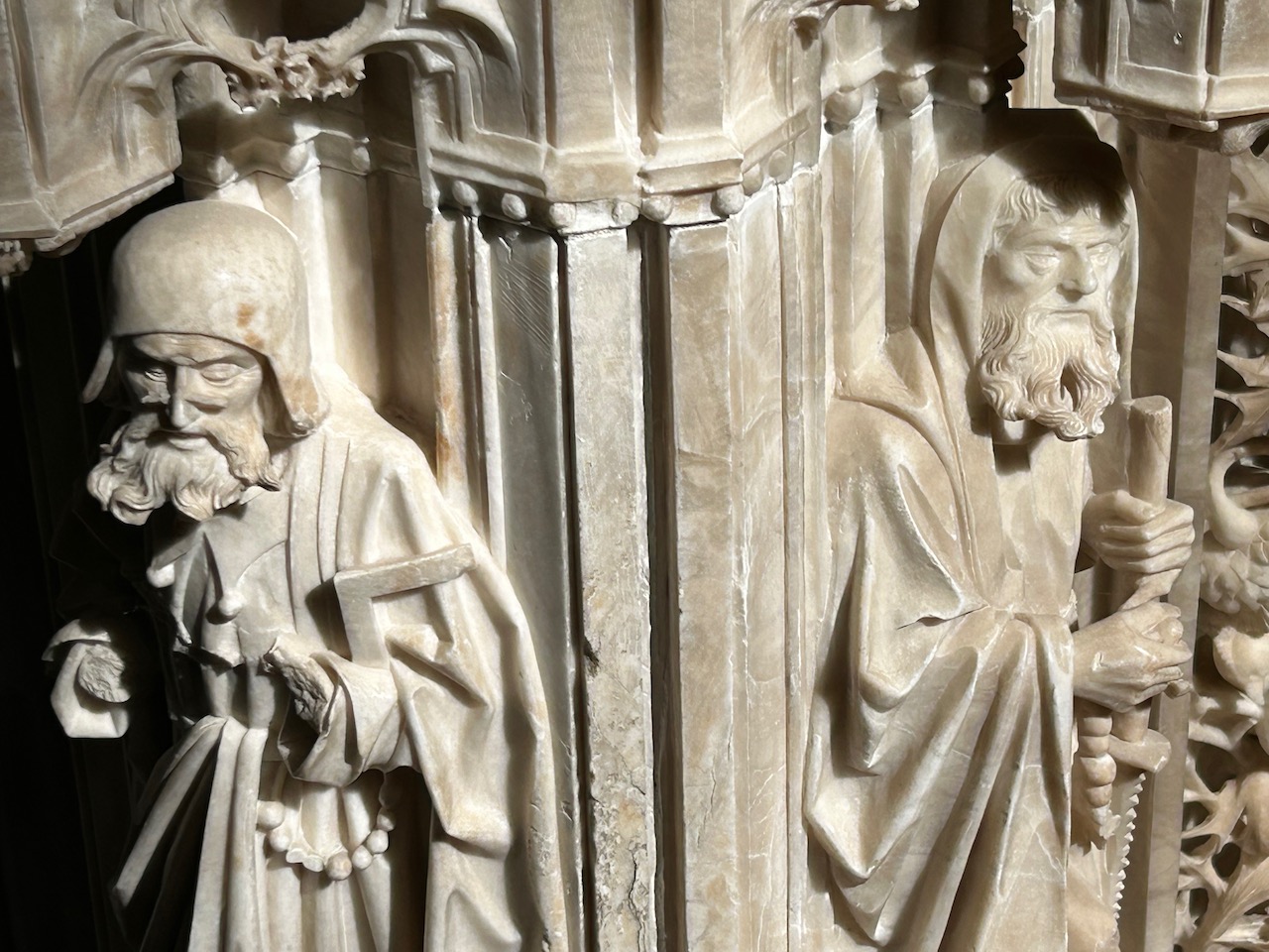 De entre los apóstoles, Santo Tomás, el primero de la izquierda, con gafas, ya difundidas en esta época y que solían asociarse con figuras que desarrollaban un trabajo intelectual, y que además parece portar una escuadra, se ha interpretado como un autorretrato de Siloe. A su lado otro de los apóstoles.