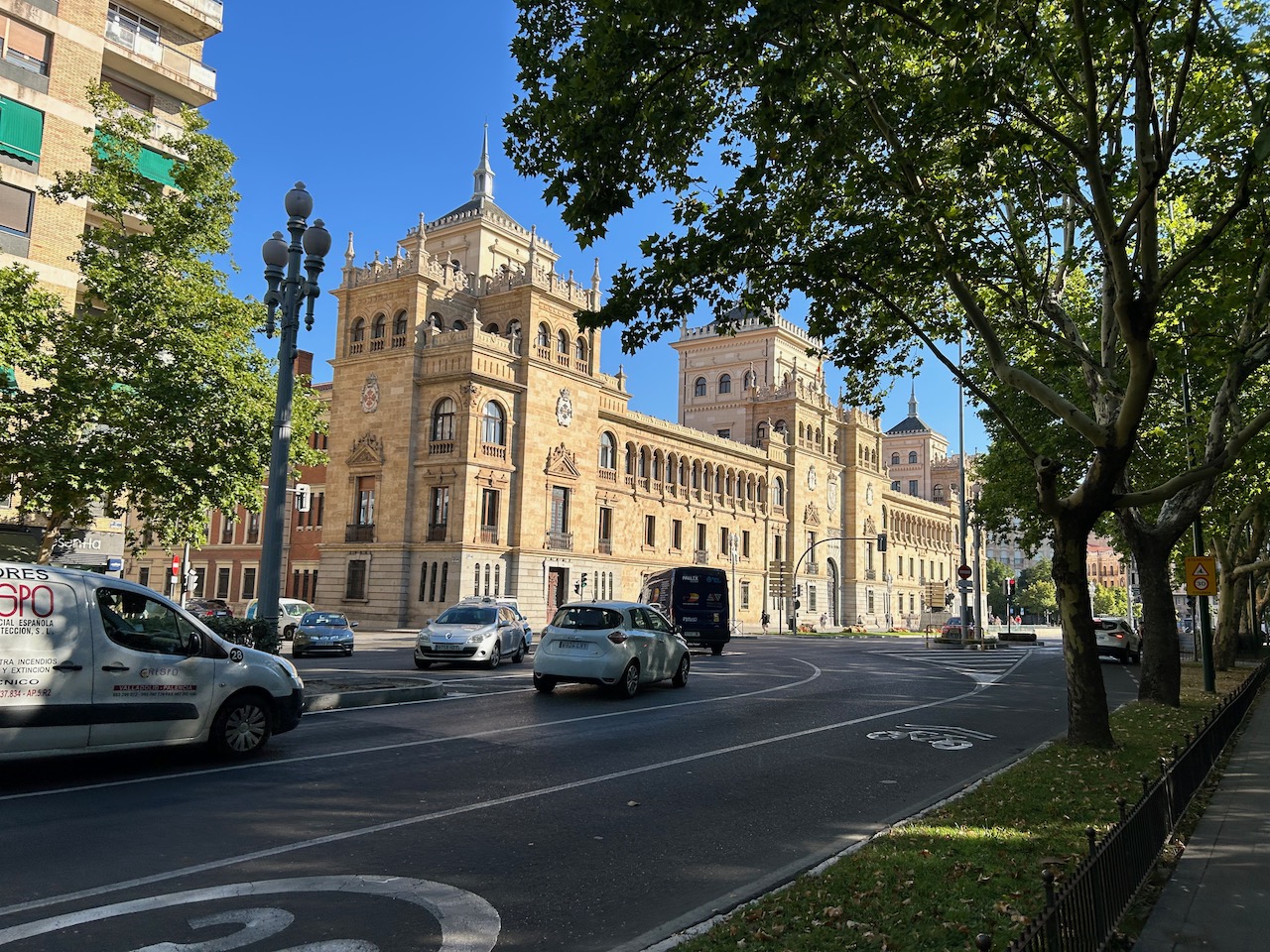 Es una edificio de principios del siglo XX ubicado frente al parque del Campo Grande y la plaza Zorilla de Valladolid. Está inspirado en el Palacio de Monterrey de Salamanca, motivo por el cual se uso la piedra arenisca característica de dicha ciudad, con planta en U y fachada longitudinal alternada por sus tres grandes torres que aligeran la composición desde el zócalo inicial a las galerías superiores.