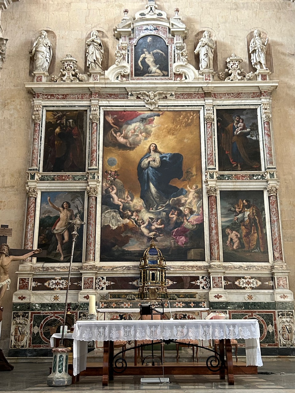 Altar mayor de la iglesia de la Purísima del Convento de las Agustinas de Salamanca con pinturas de José de Ribera, Rubens, Guido Reni y Giacomo Cavedone.