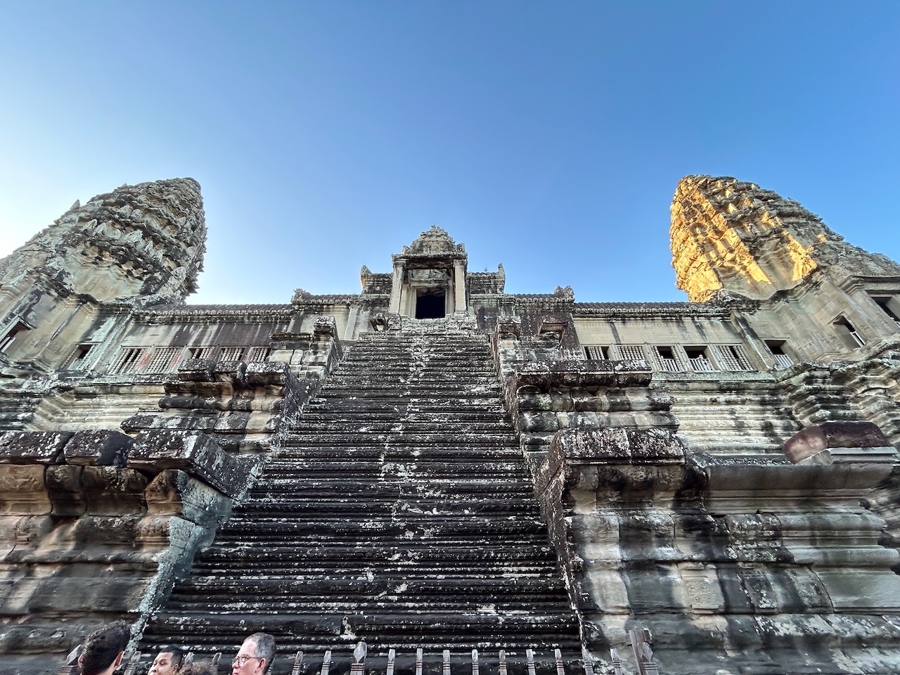 Angkor Wat fue la capital del imperio jemer que floreció aproximadamente entre los siglos IX y XV. Construido por Suryavarman II está rodeado de un amplio foso. Angkor es la representación terrenal del monte Meru, el Olimpo de los hindúes. Hoy es el lugar de peregrinación para todos los camboyanos y el edificio religioso mas grande del mundo.