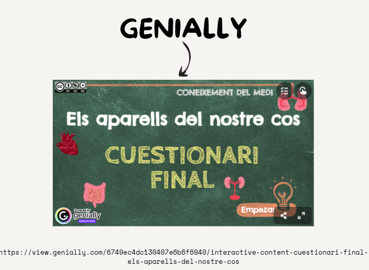 Genially amb preguntes per a repassar el contingut treballat sobre els aparells del cos humà.