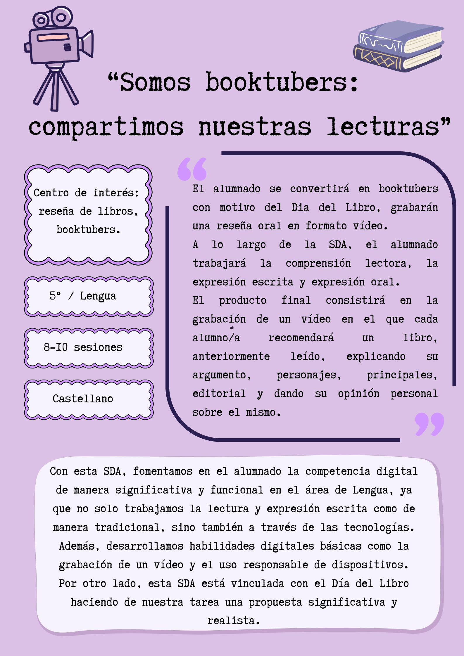 SDA para trabajar en el área de lengua la reseña escrita y oral. Dirigida al alumnado de 5º de EP.