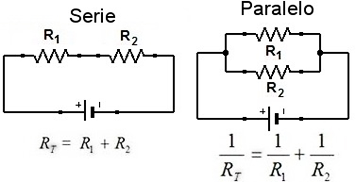 Ilustración de un ejemplo de esquema de resistencias en serie y en paralelo