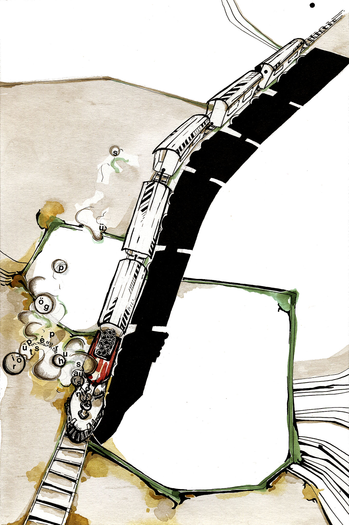 El Sur: Afuera la móvil sombra del vagón se alargaba hacia el horizonte
