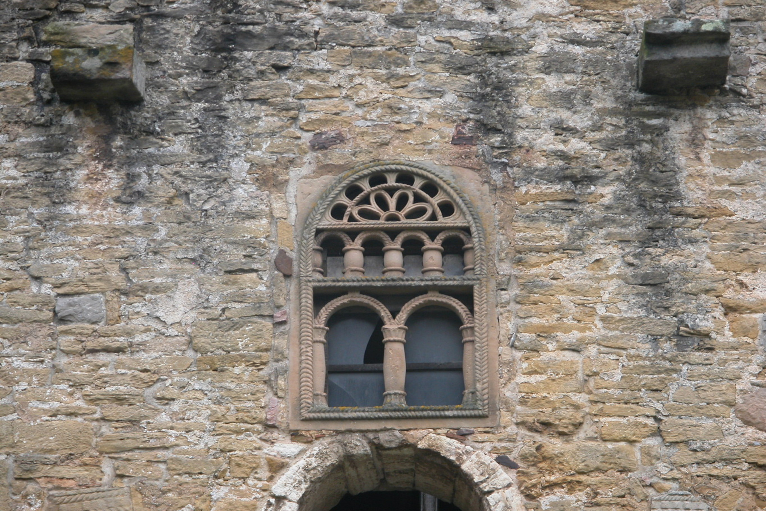 Detalle de la fachada de la Iglesia de San Miguel de Lillo, Oviedo, Asturias
