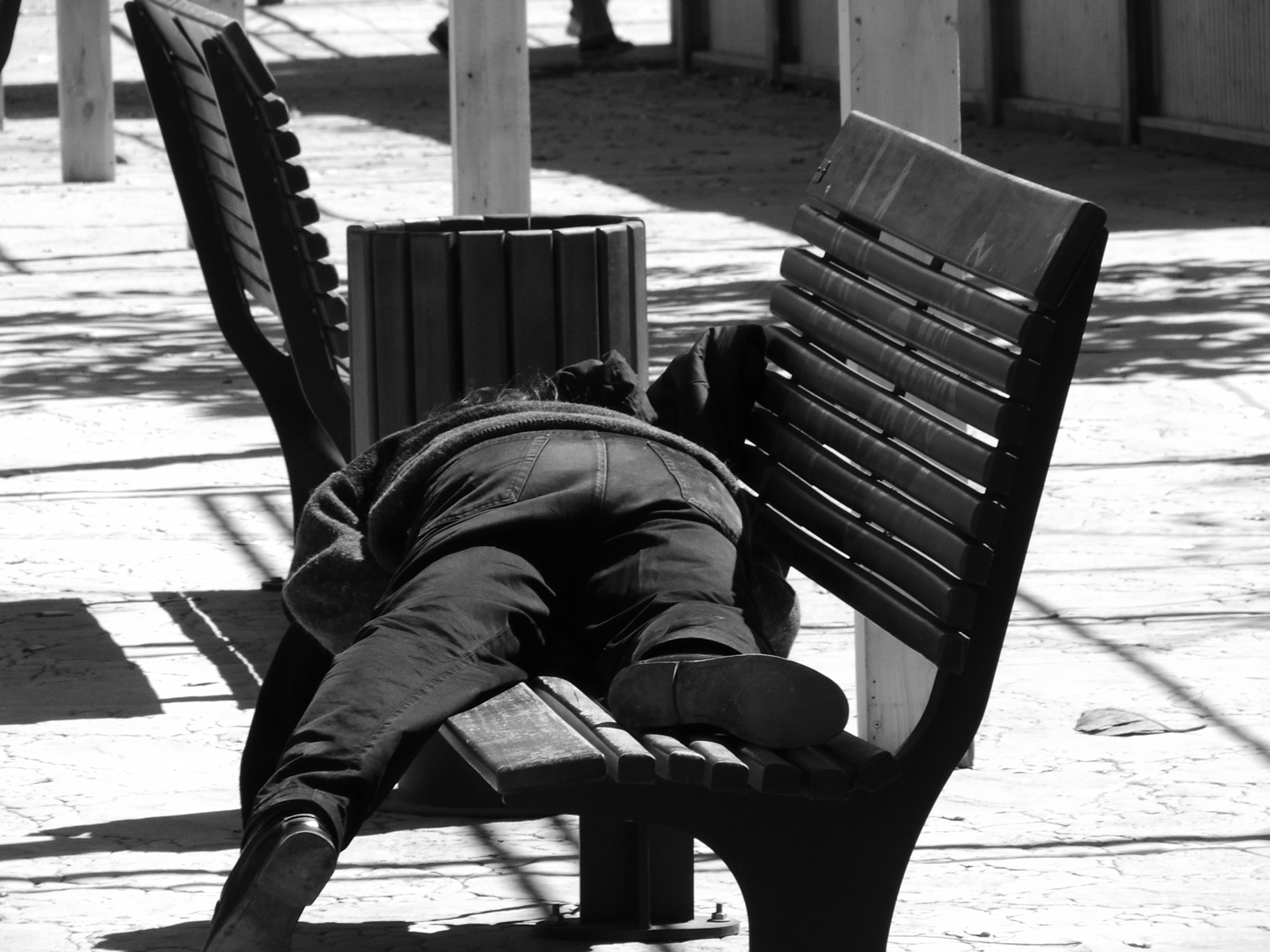 Indigente en un banco