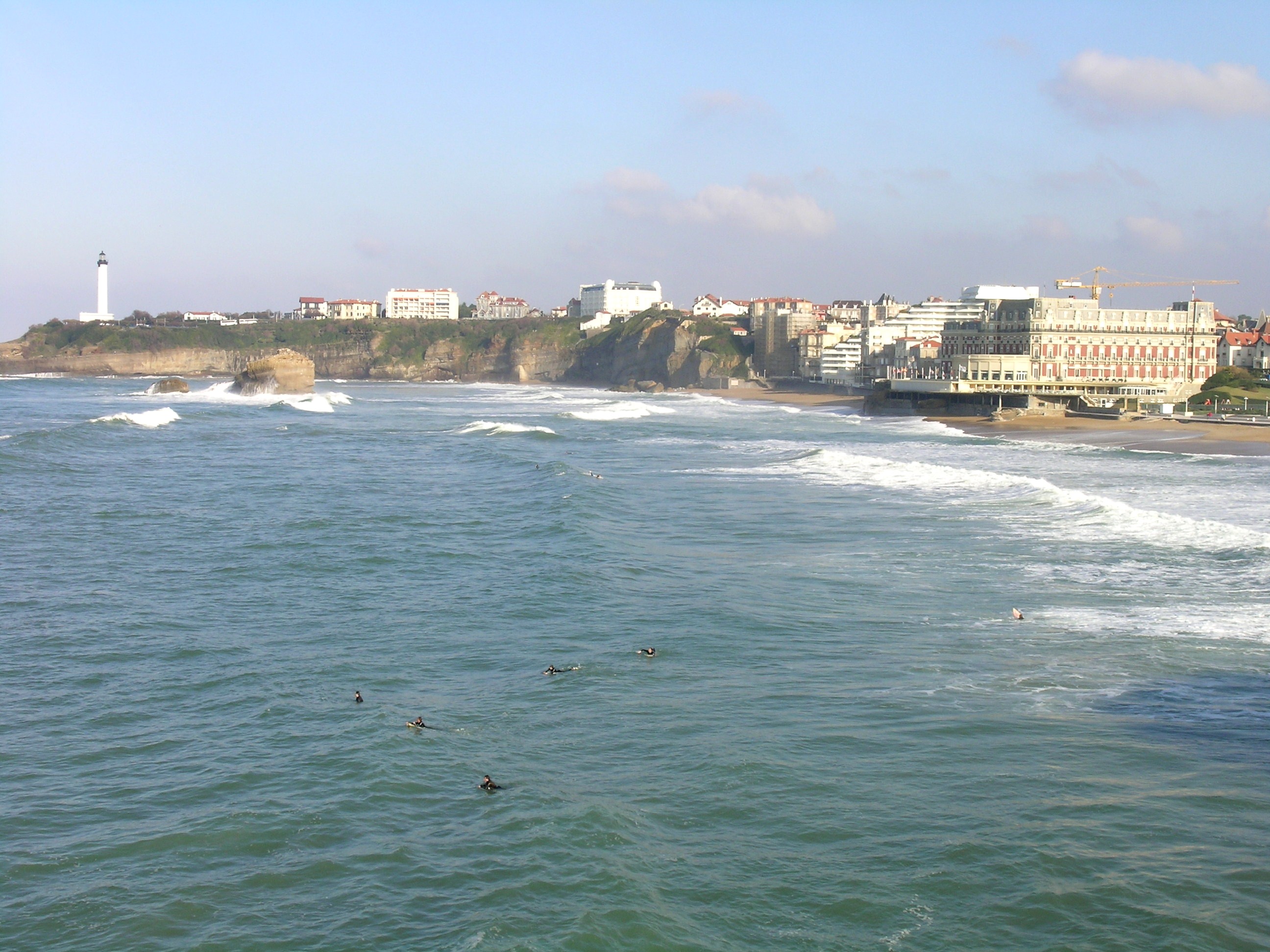 Vista general del faro y Villa Eugénie, Biarriz, Francia