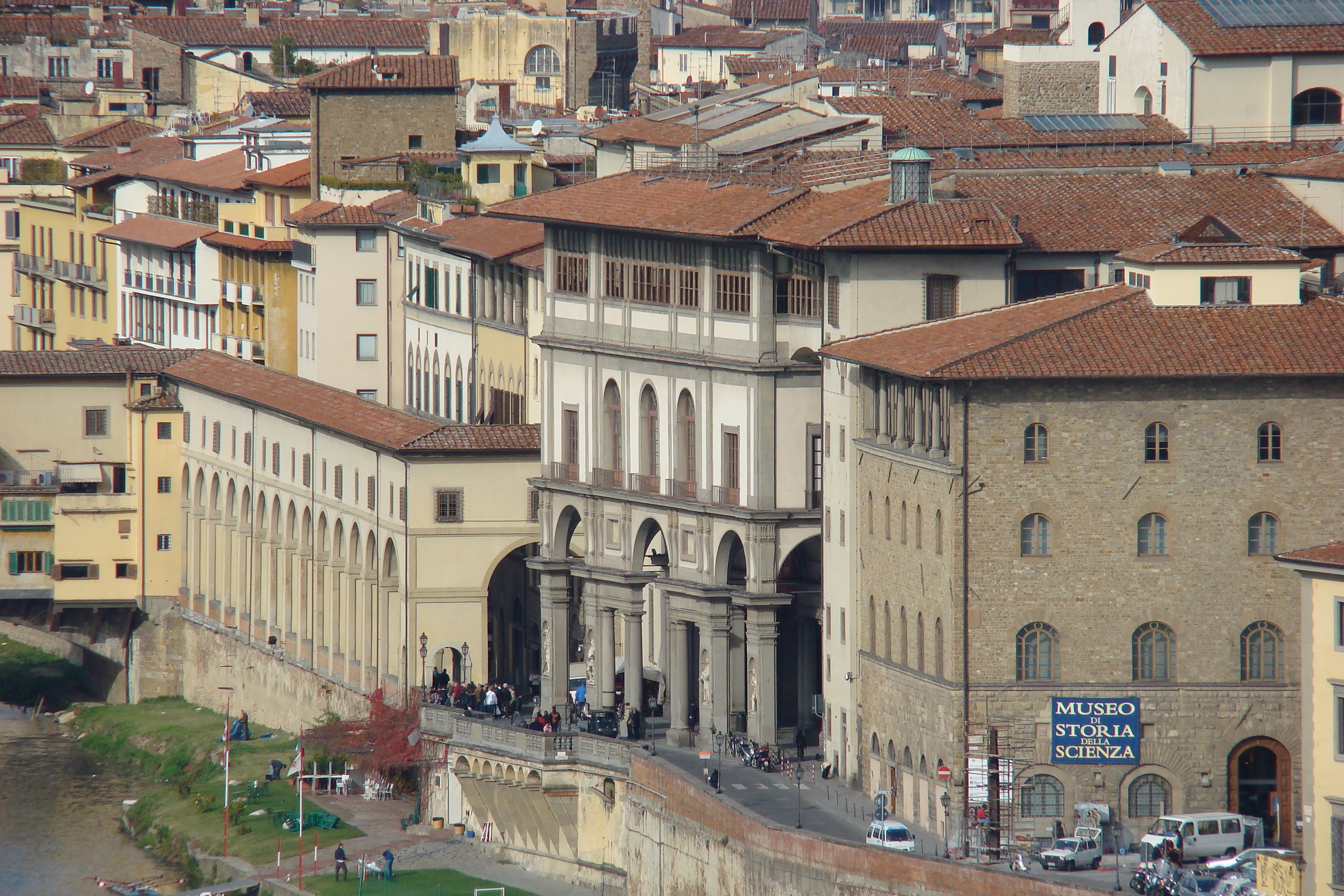 Vista parcial del Corridoio Vasariano o Corredor Vasariano, Florencia, Italia