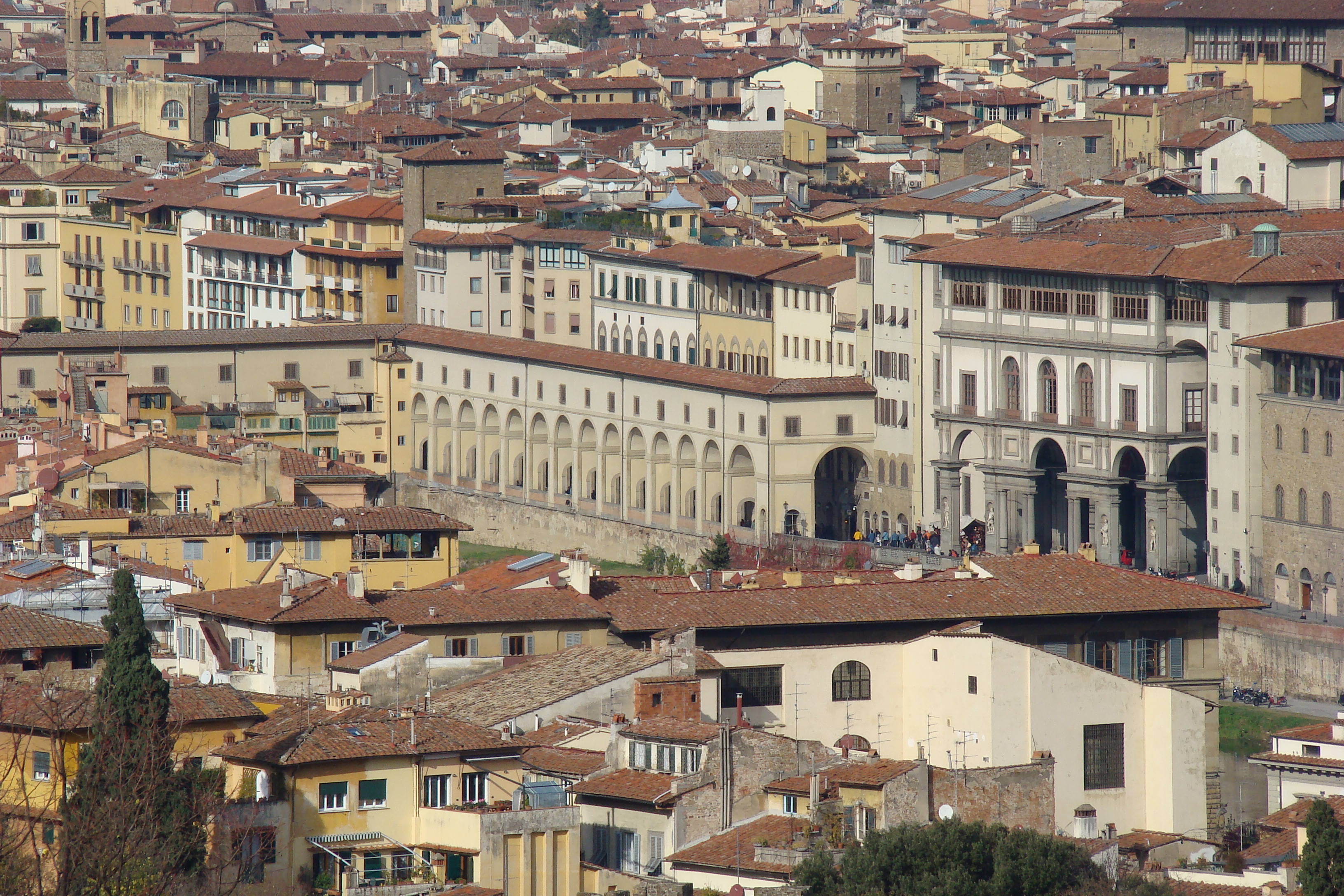Vista general del Corridoio Vasariano o Corredor Vasariano, Florencia, Italia