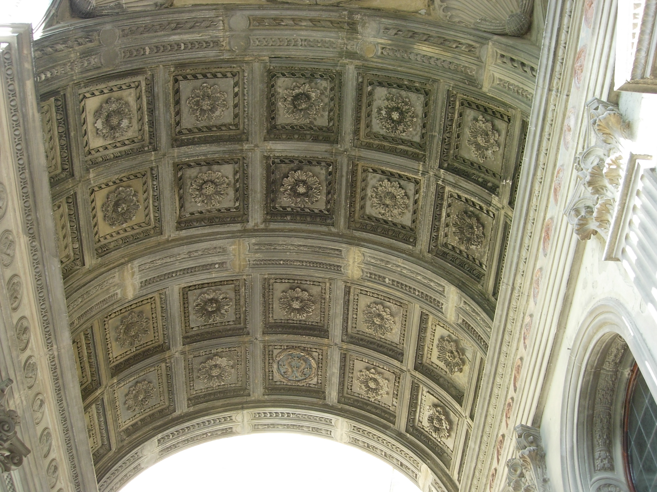 Techumbre del pórtico de la Capilla Pazzi en la Basílica de la Santa Cruz, Florencia, Italia