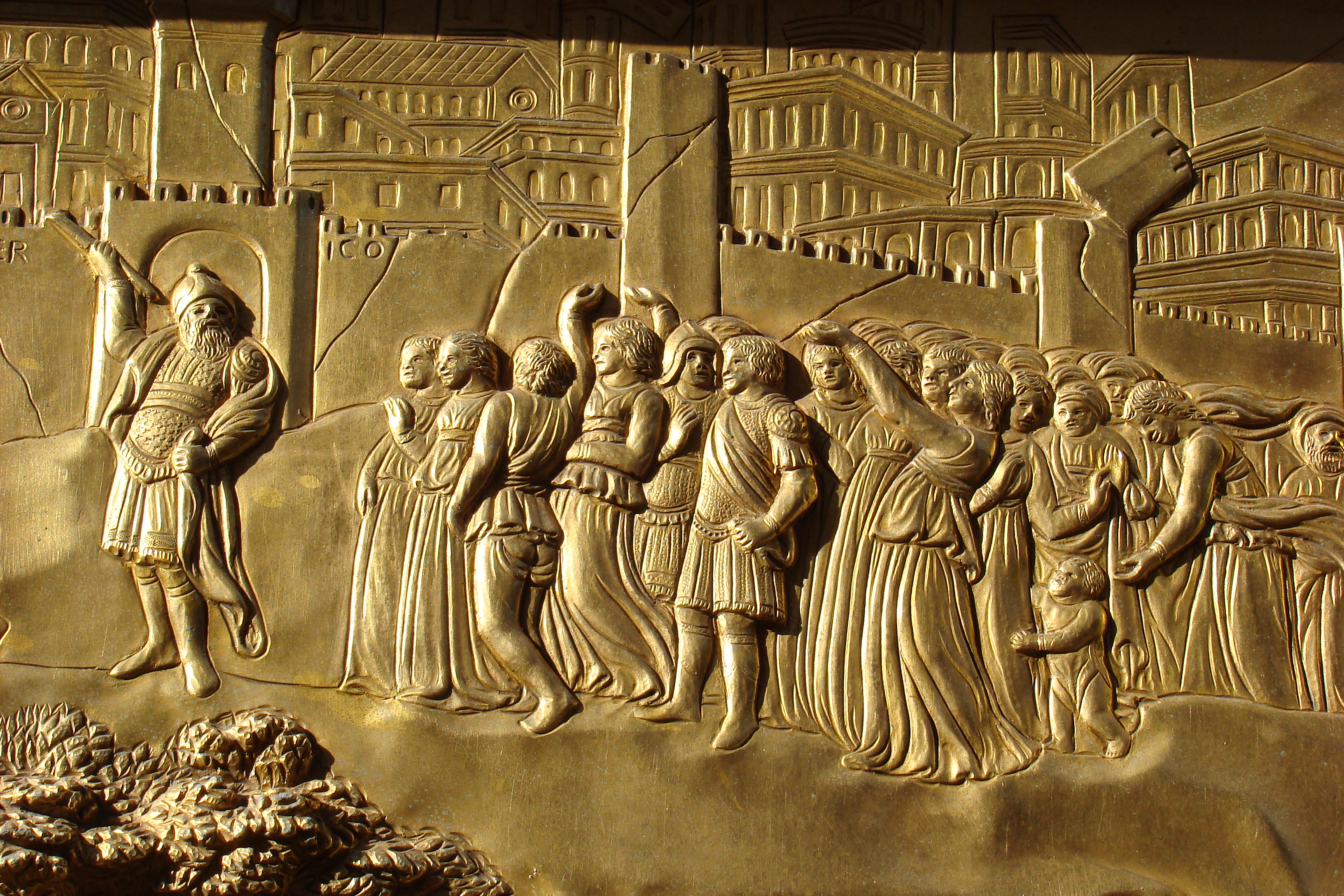 Detalle de la Puerta del Paraíso del Baptisterio, Florencia, Italia