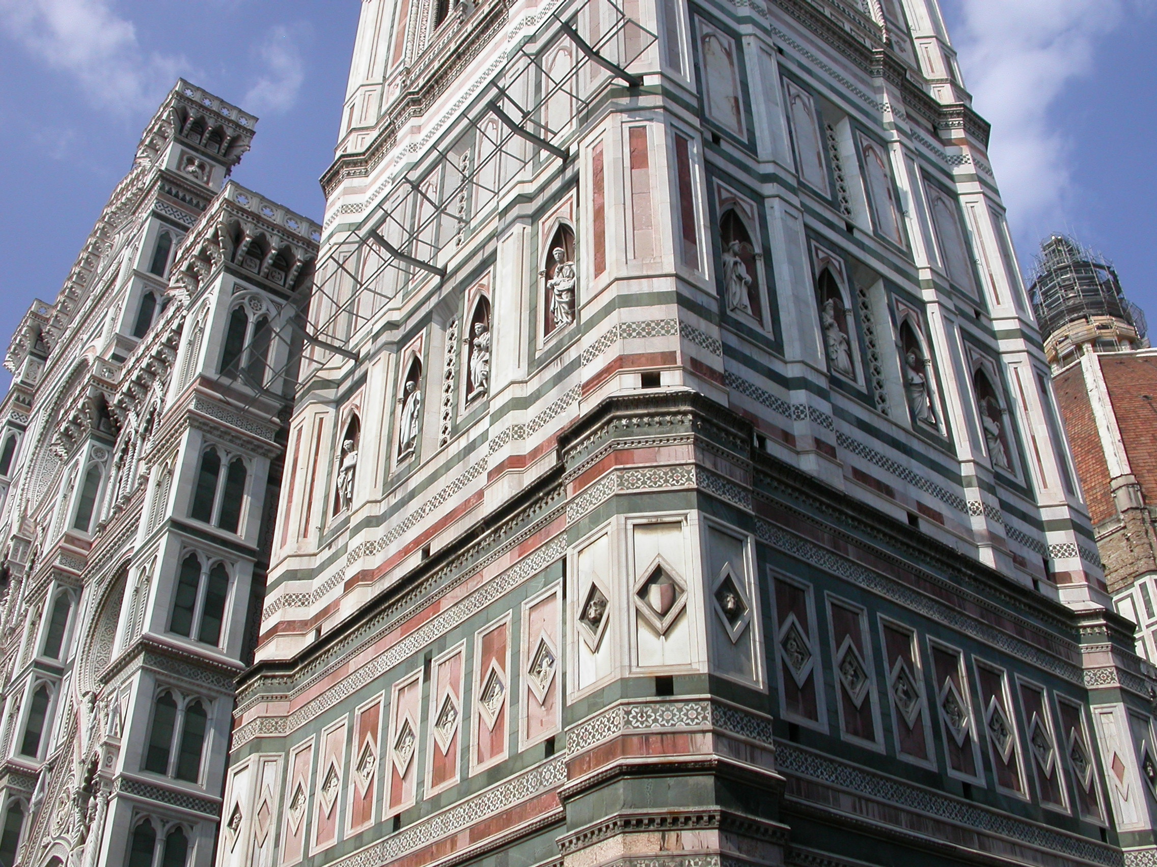 Detalle del Campanile o Campanario del Duomo o Catedral de Florencia, Italia
