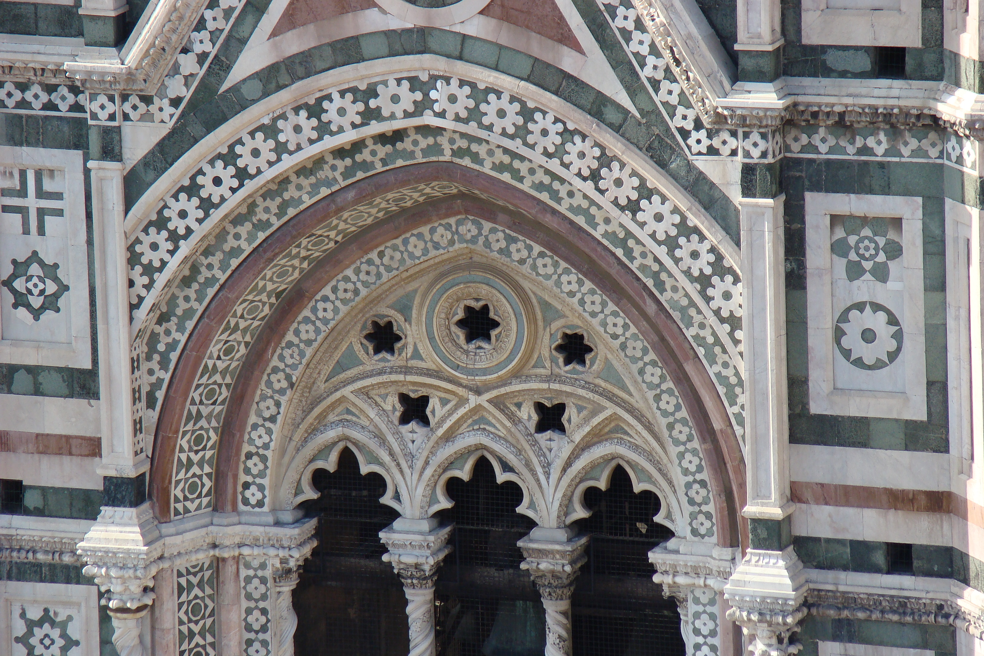 Detalle del Campanile o Campanario del Duomo o Catedral de Florencia, Italia