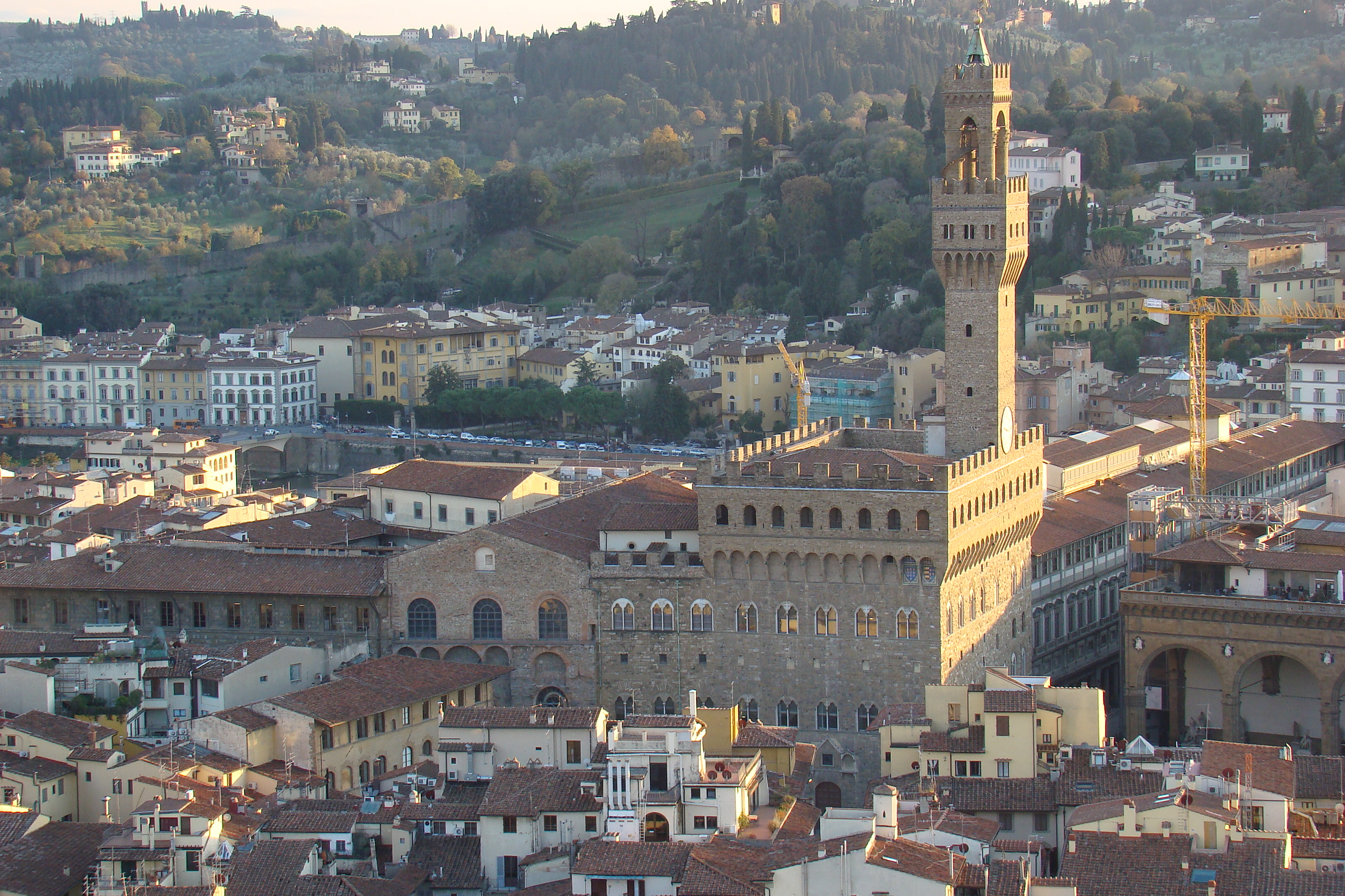 Vista general del Palacio Viejo o Palazzo Vecchio, Florencia, Italia