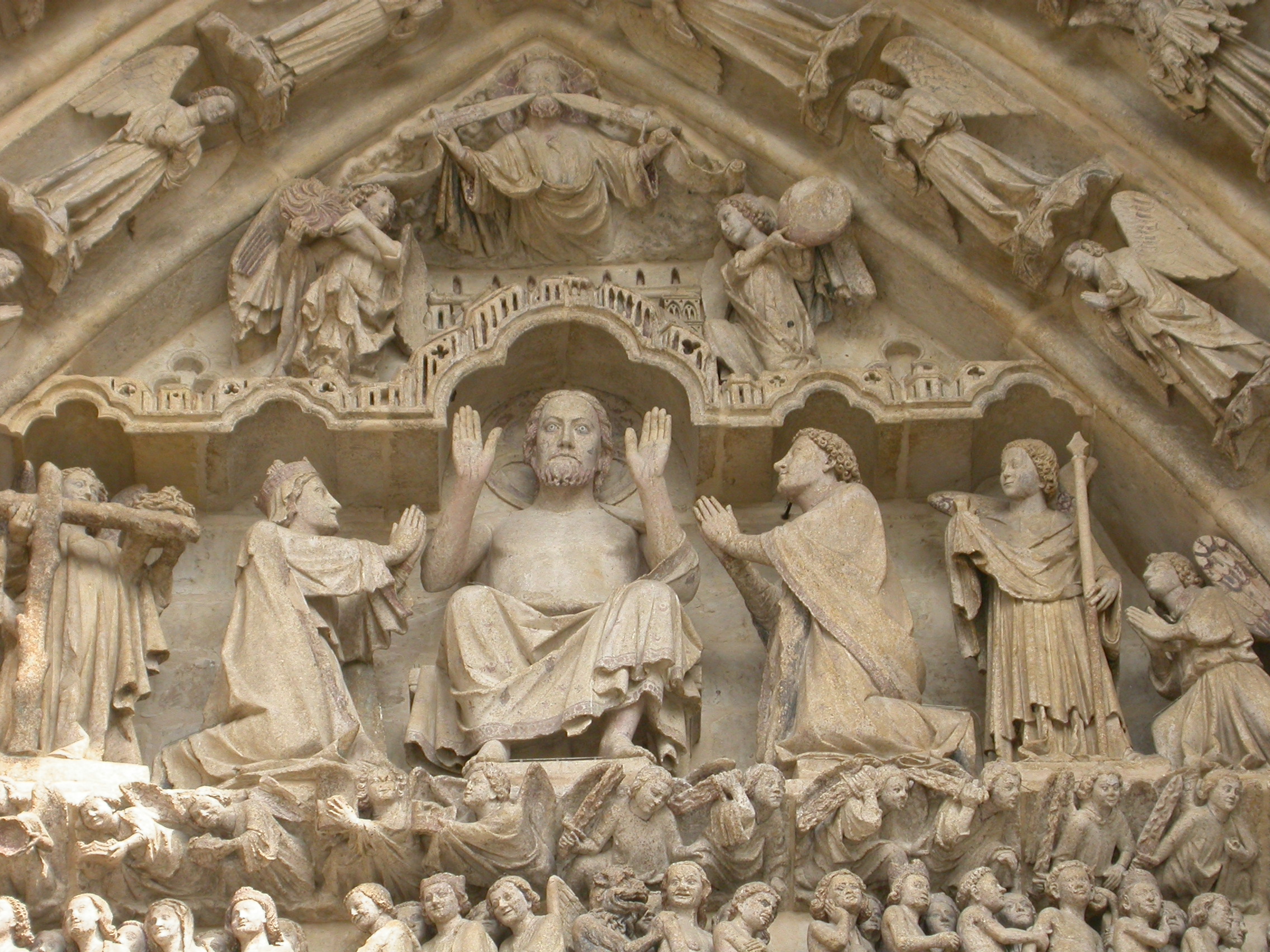 Detalle del tímpano del portal de San Salvador en la Catedral de Amiens, Francia