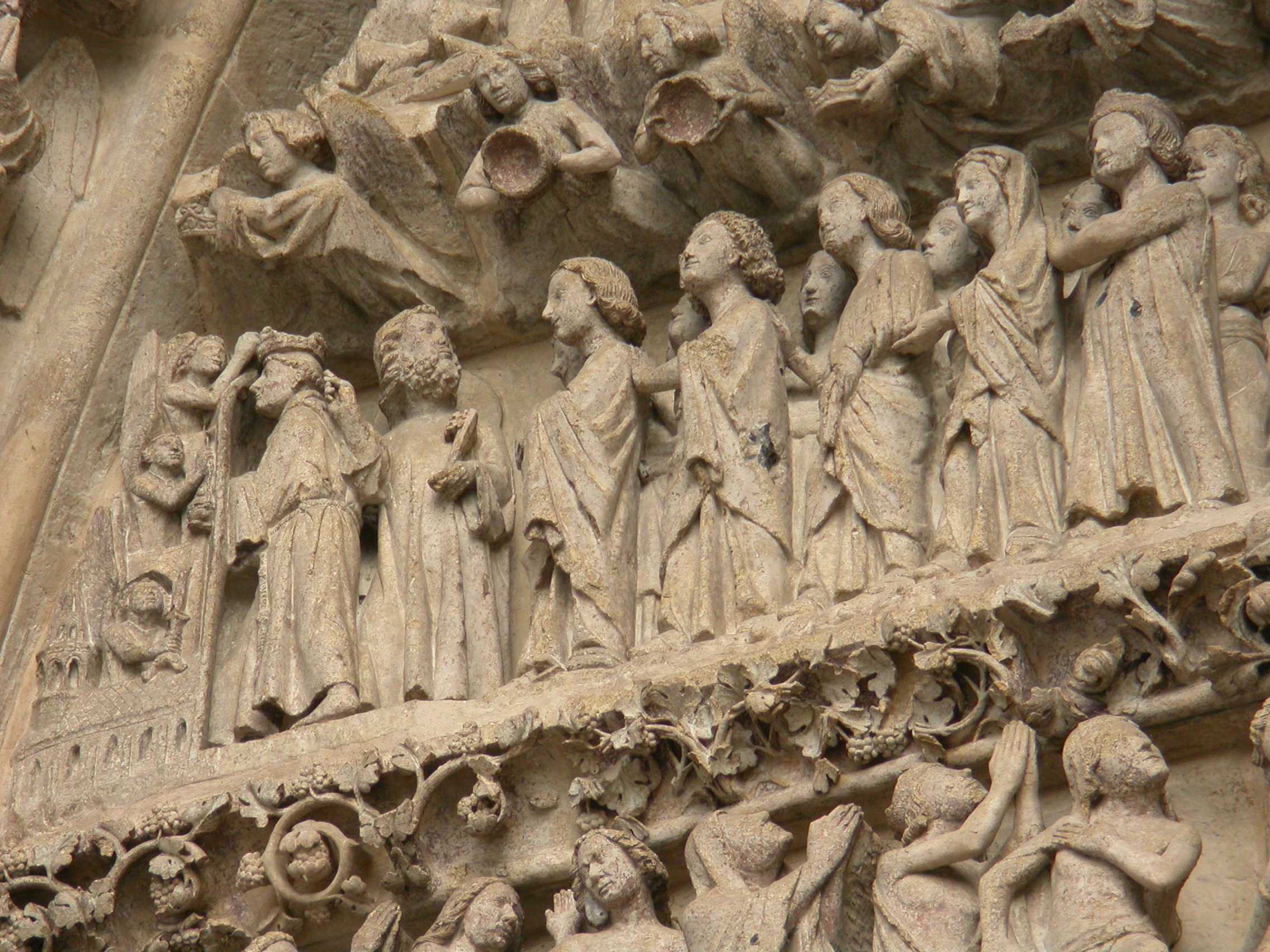 Detalle del tímpano del portal de San Salvador en la Catedral de Amiens, Francia