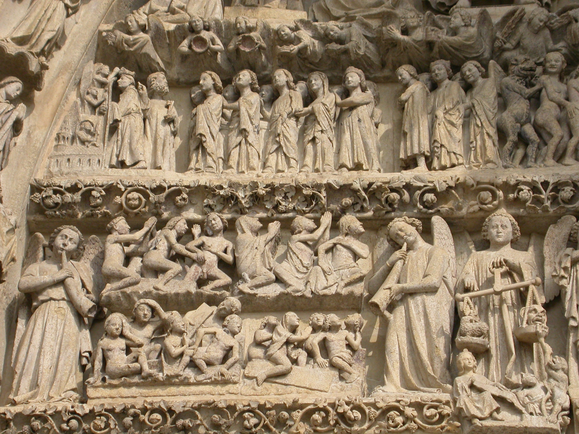 Detalle del tímpano del portal de San Salvador en la Catedral de Amiens, Francia