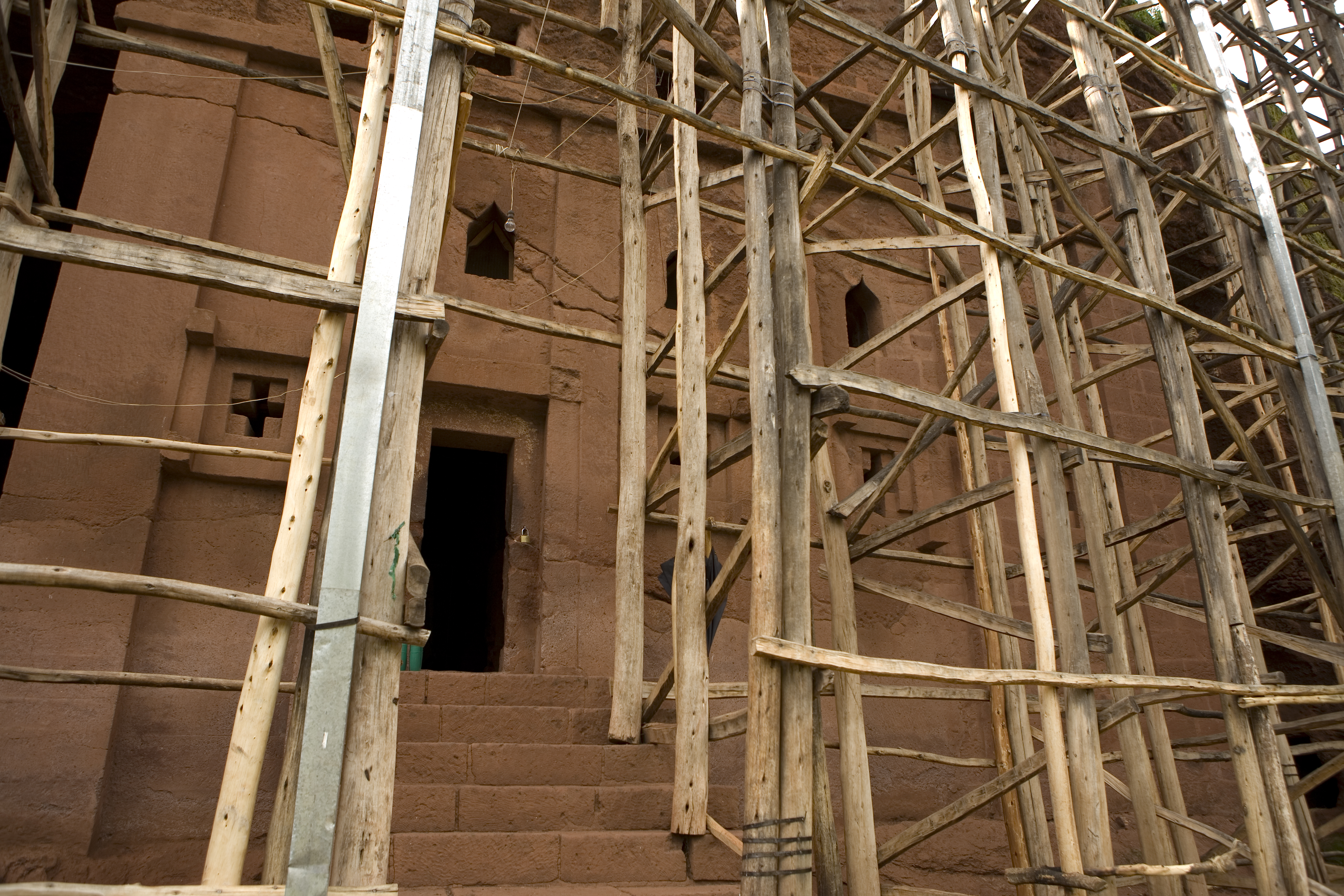 Fachada en obras de Bete Denaghel en Lalibela, Etiopía