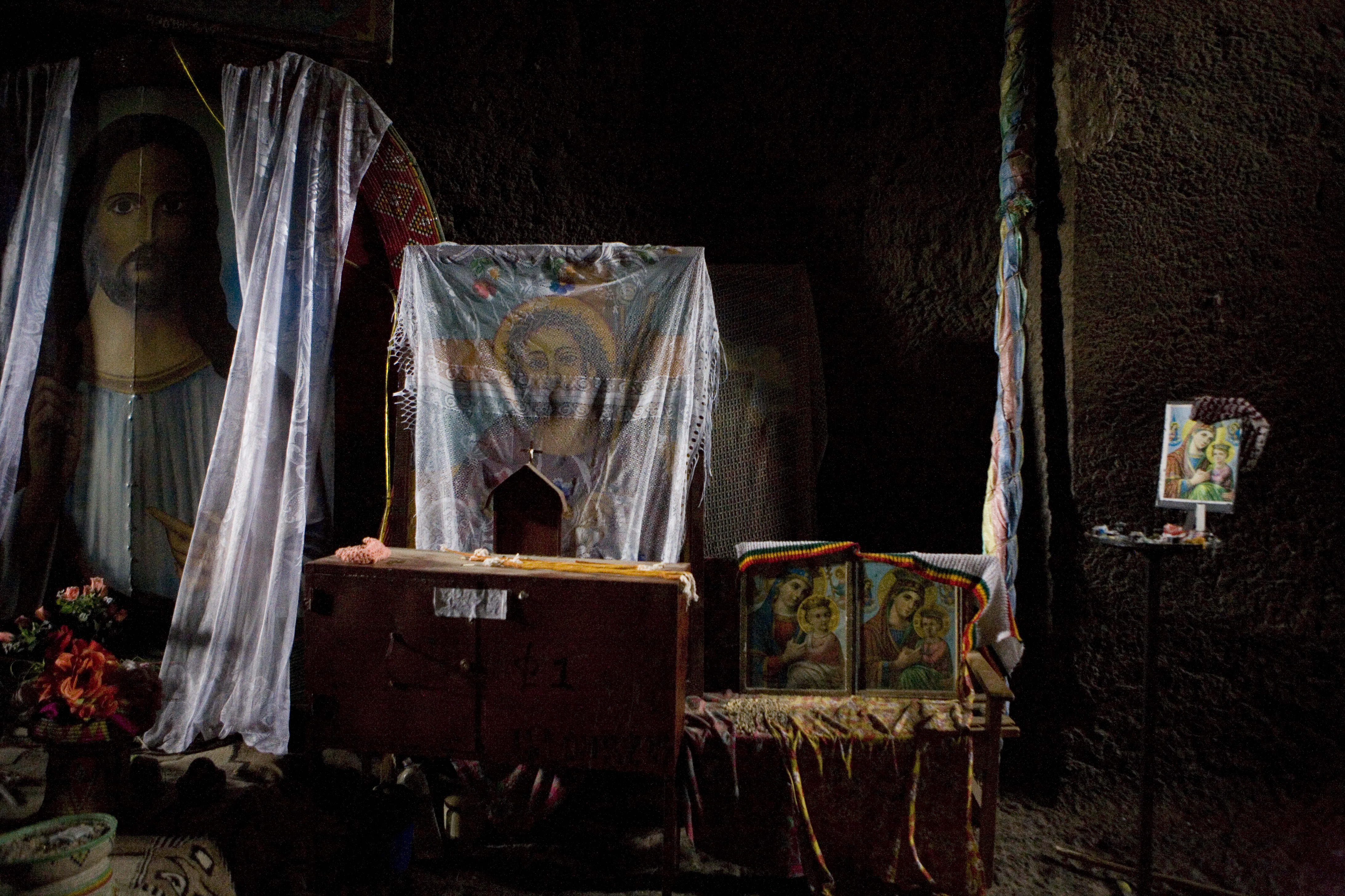 Interior de Bete Ammanuel en Lalibela, Etiopía