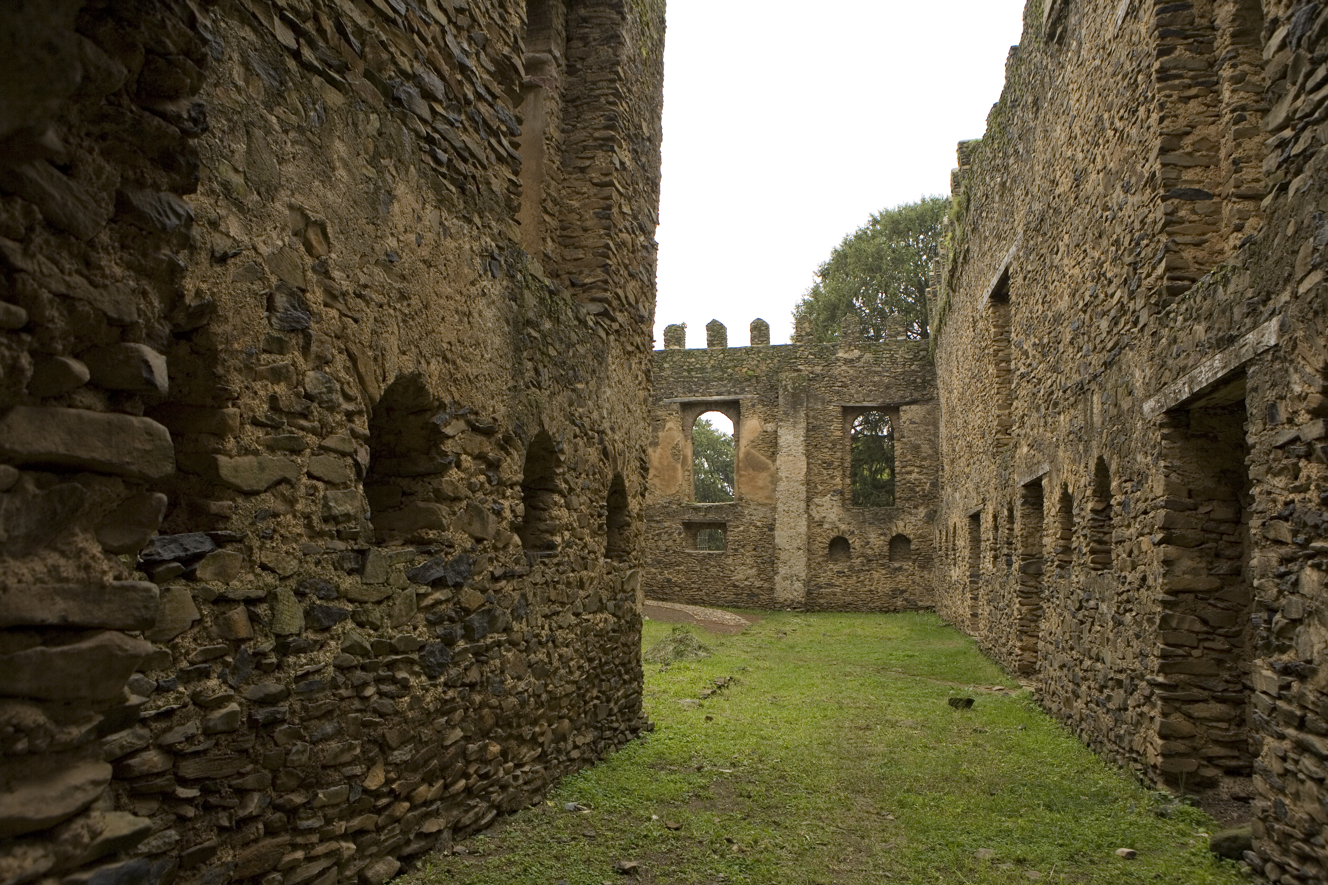 Interior de los muros de piedra del recinto real de Fasil Ghebi, Etiopía