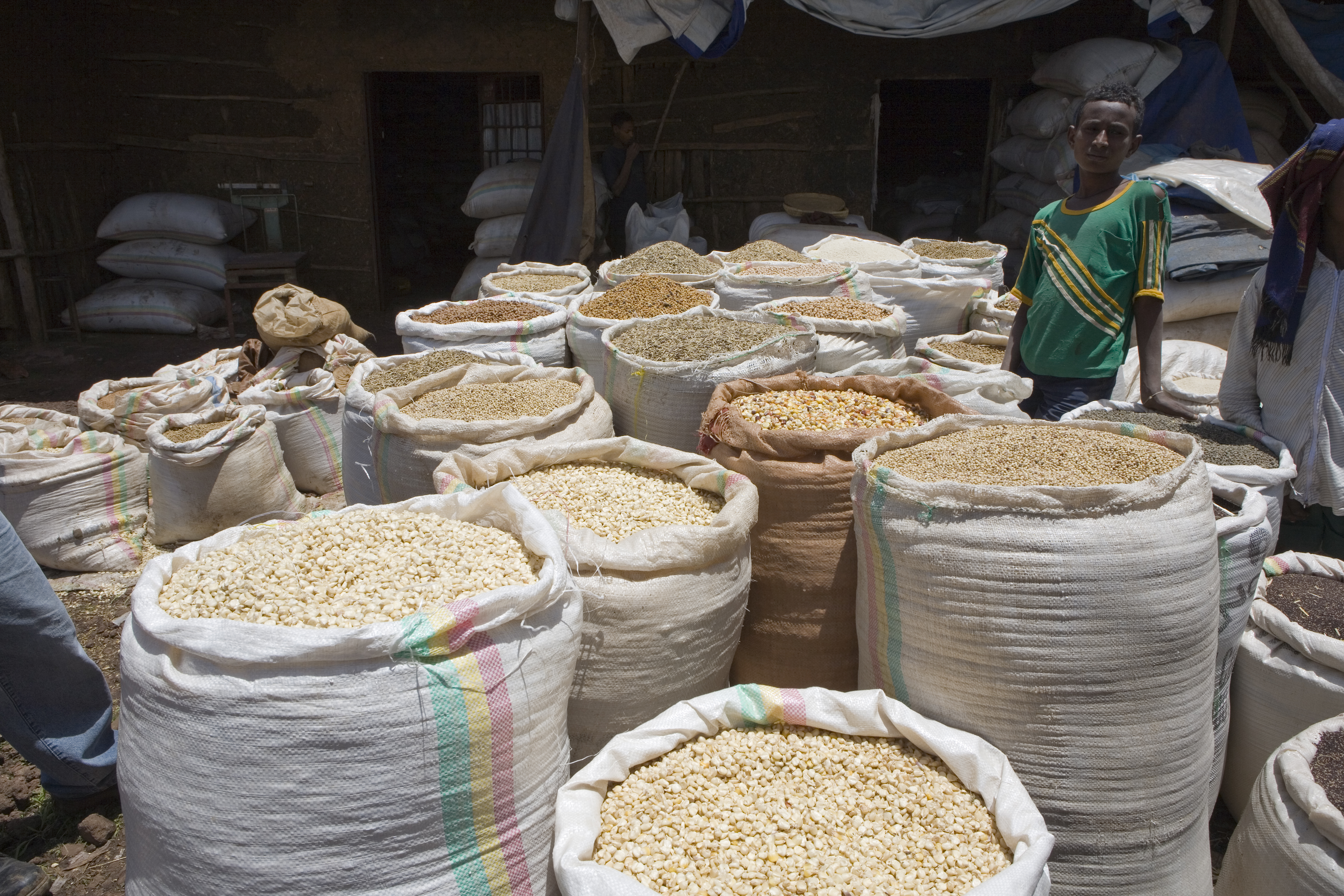Puesto de cereales y leguminosas en el mercado Bahar Dar, Etiopía