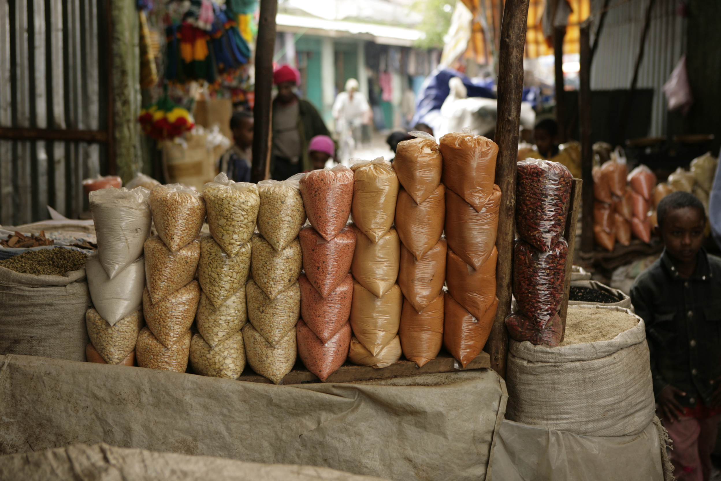 Puesto de especias y de harina de tef en Bahar Dar, Etiopía