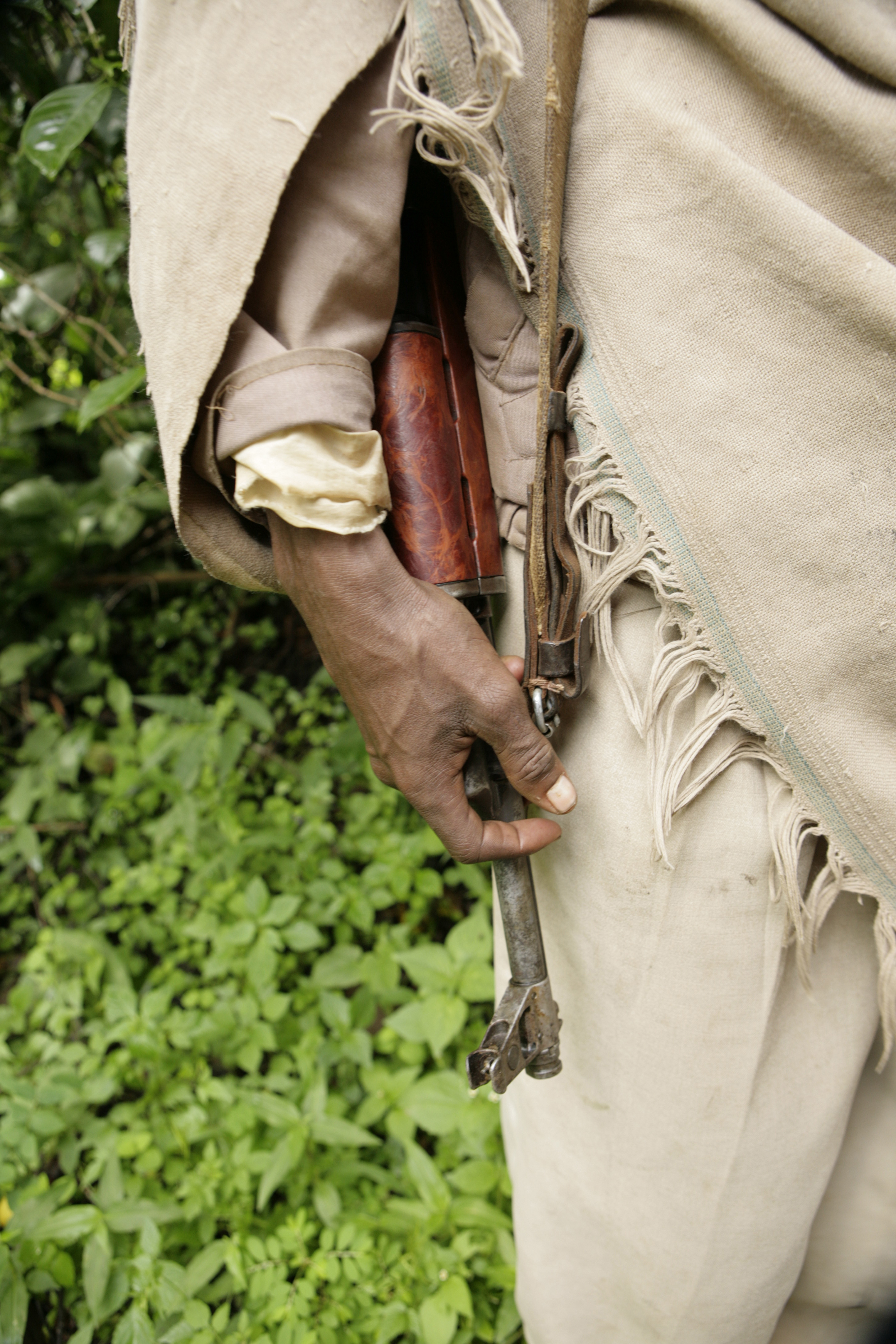 Hombre armado vigila el monasterio Kibran Gabriel, Etiopía
