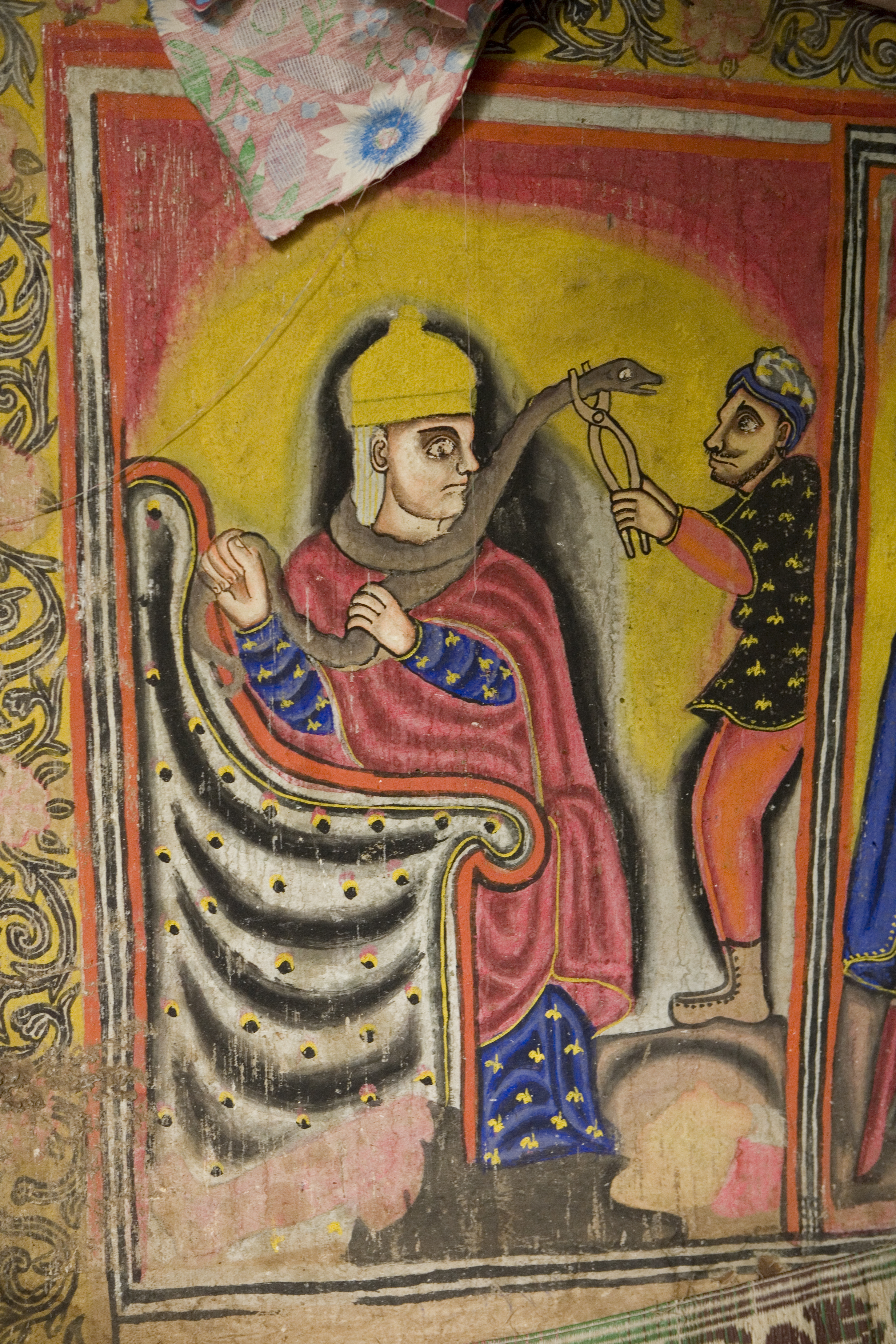 Abune Za Yohannes matando a la serpiente, monasterio de Debre Maryam, Etiopía