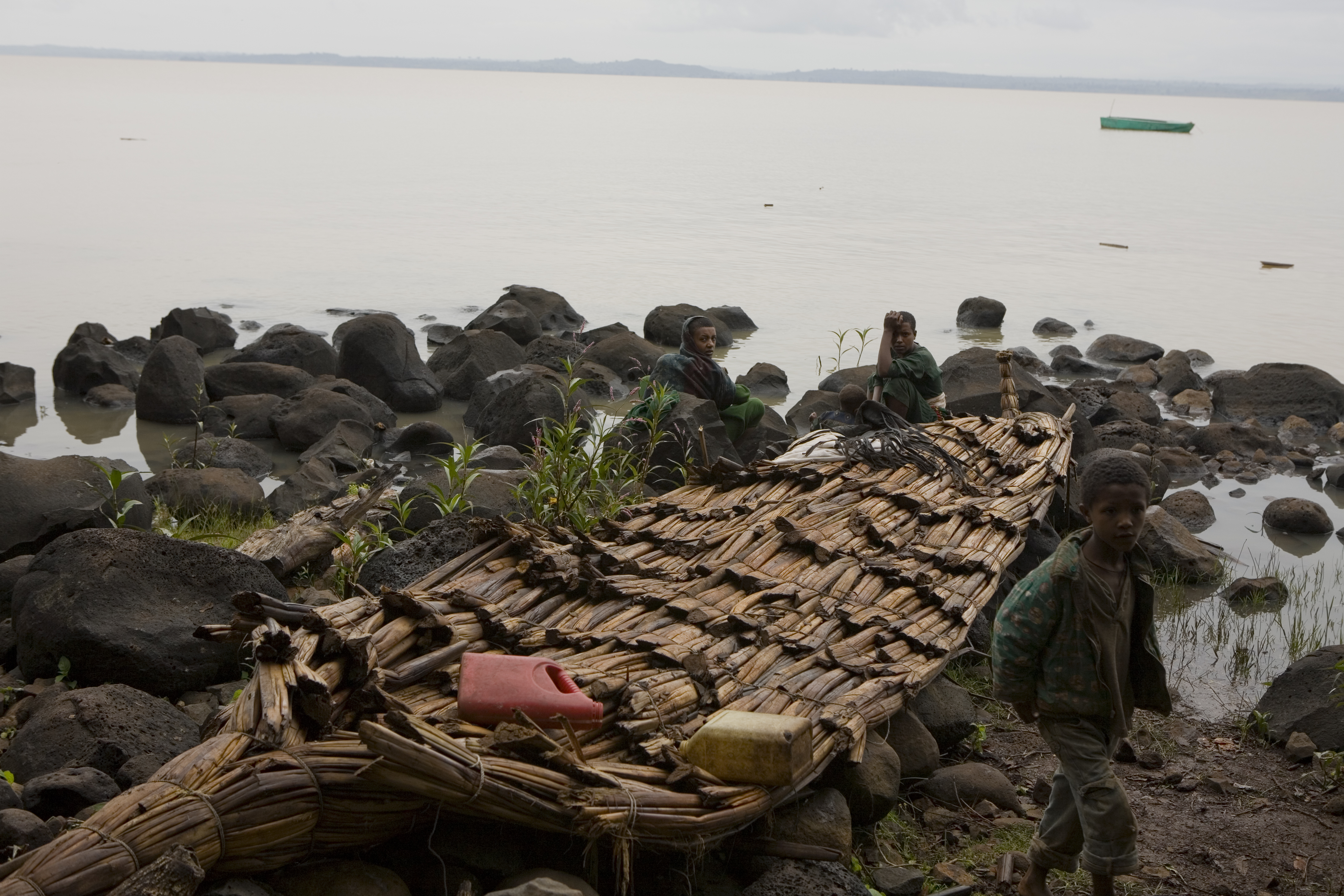 Embarcación de papiro en la orilla del lago Tana, Etiopía