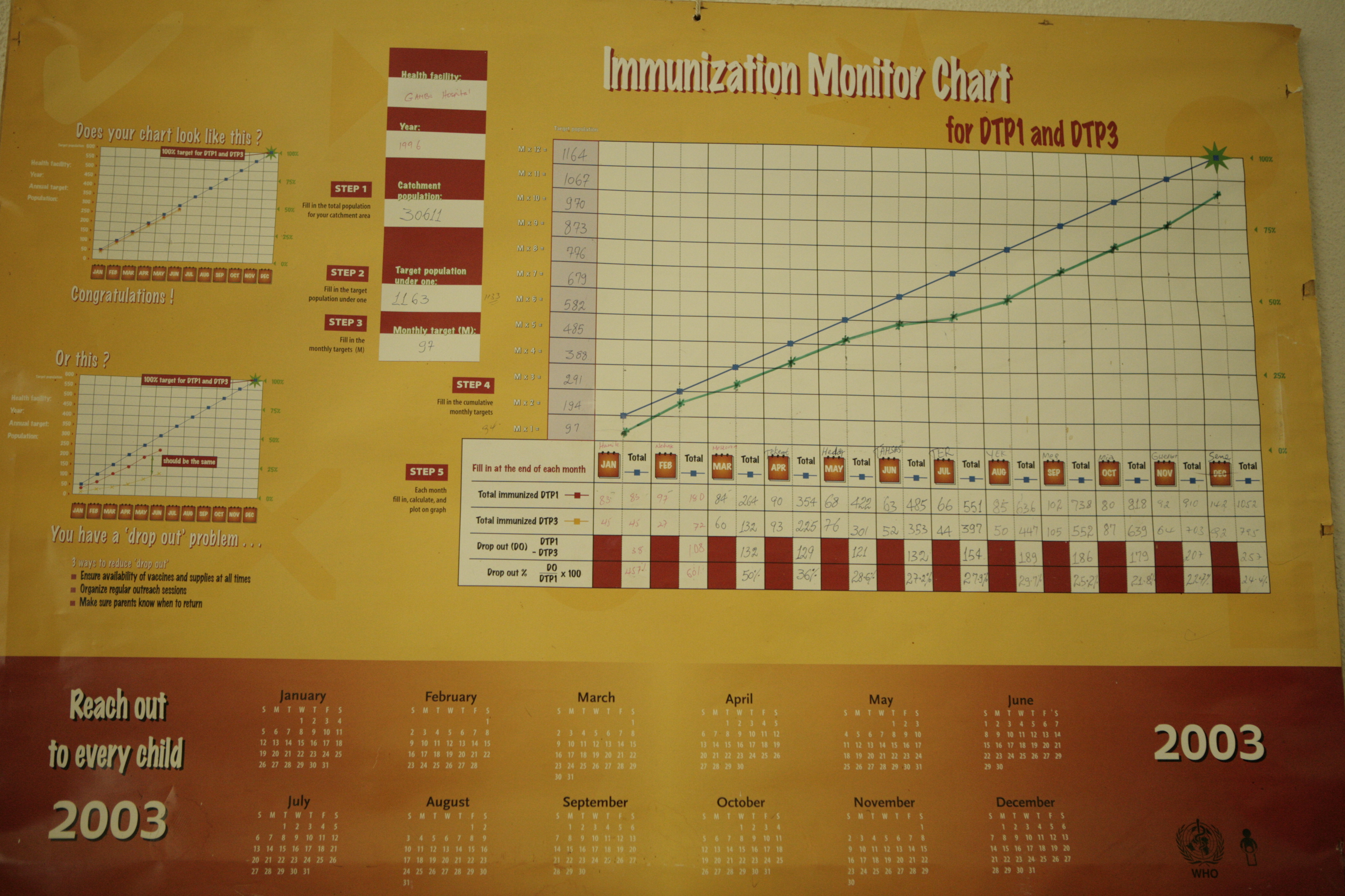 Cartel con estadísticas de vacunación de Gambo, Etiopía