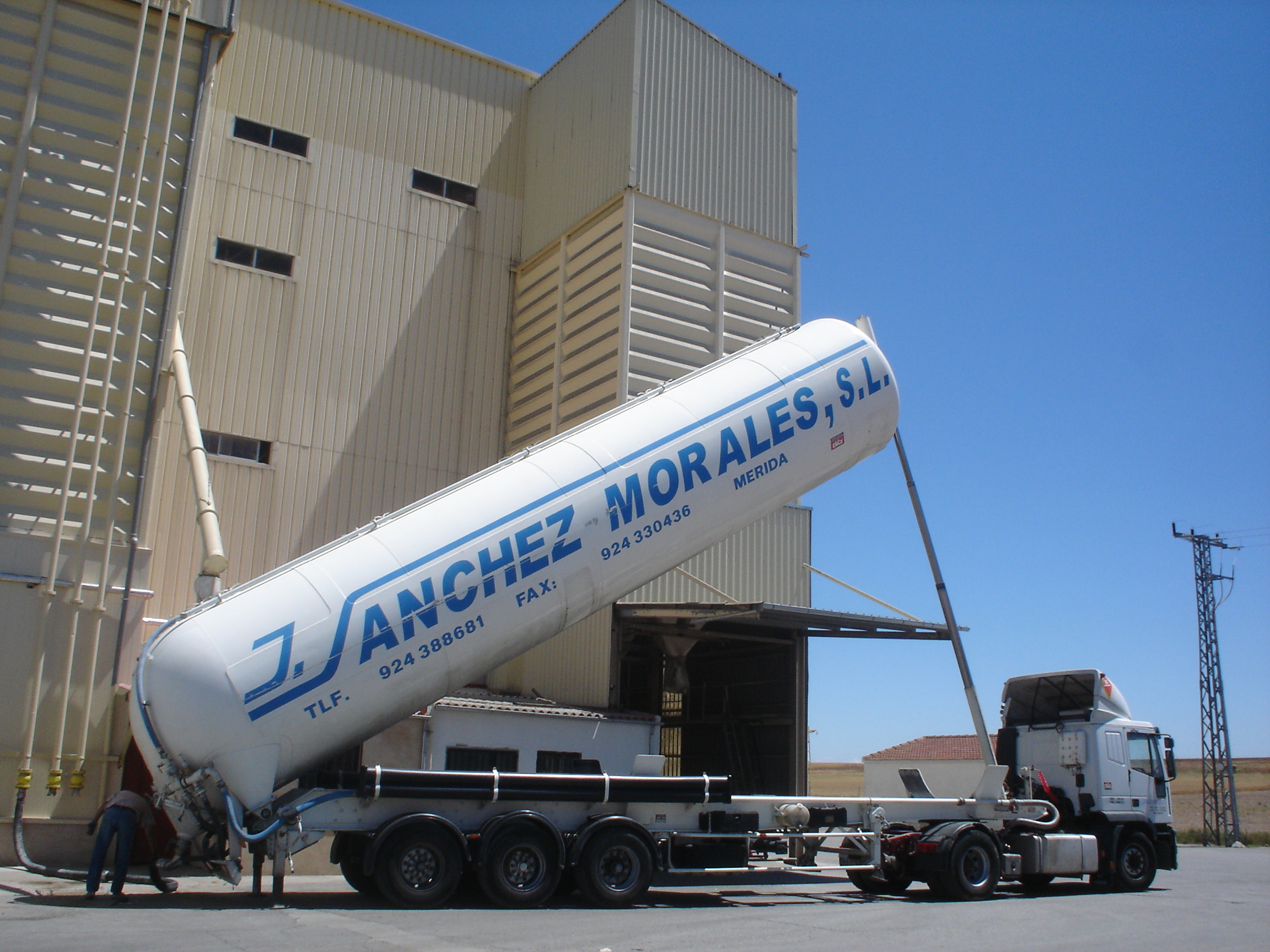 Cisterna neumática descargando minerales de piensos
