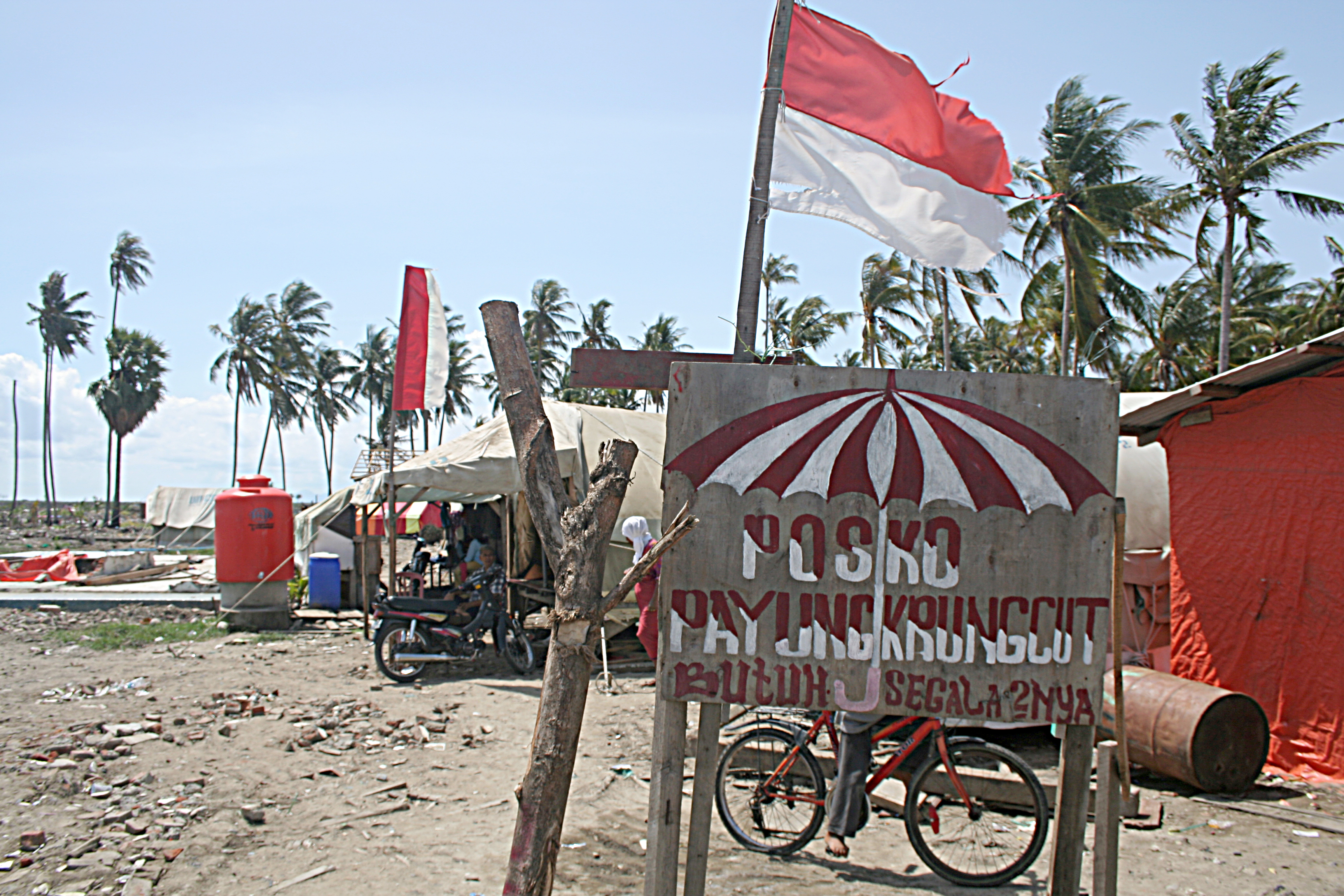Vista general de las tiendas del campamento liengke de Sumatra, Indonesia