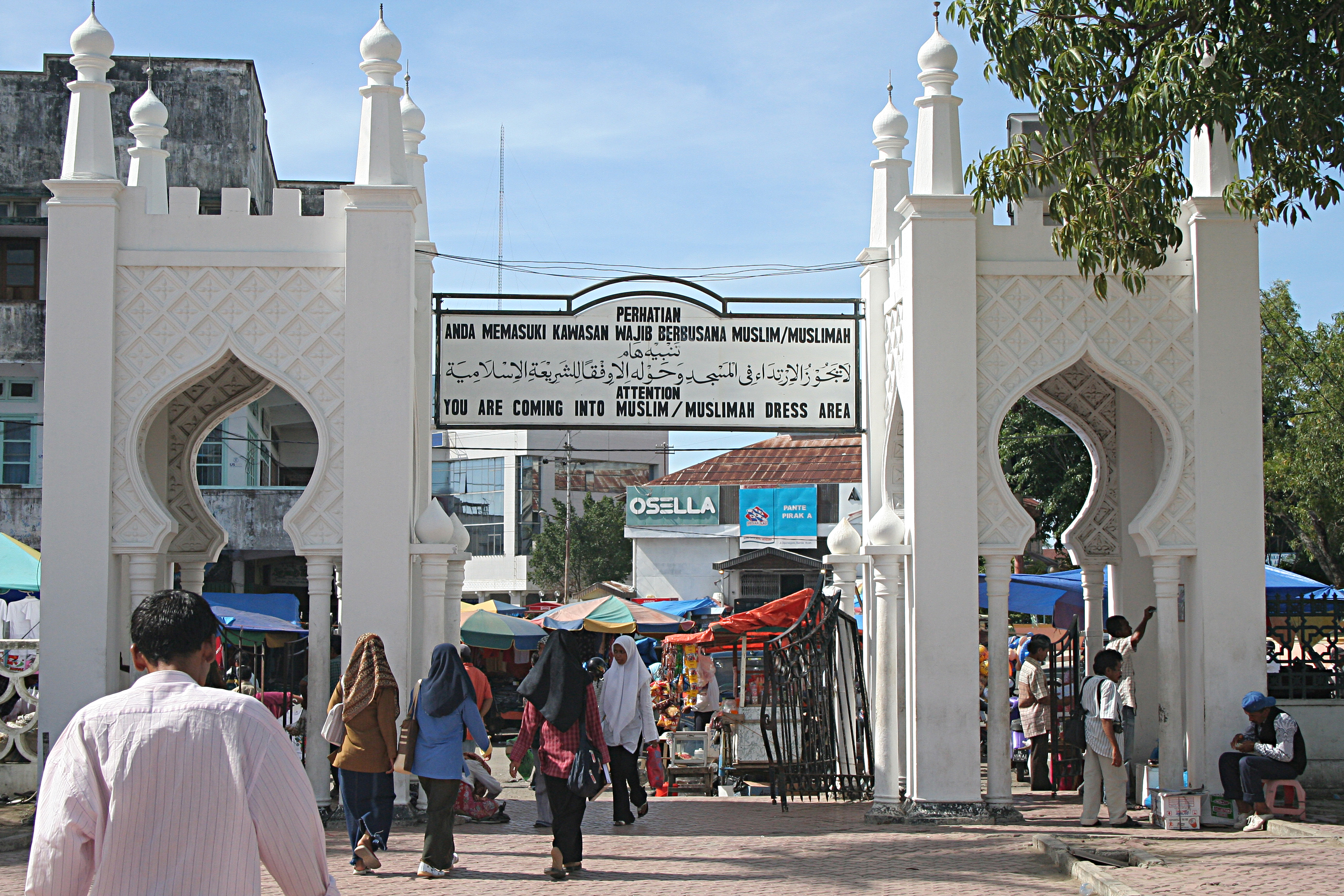 Entrada a la Mezquita Mesjid Ray en Medan, Sumatra, Indonesia