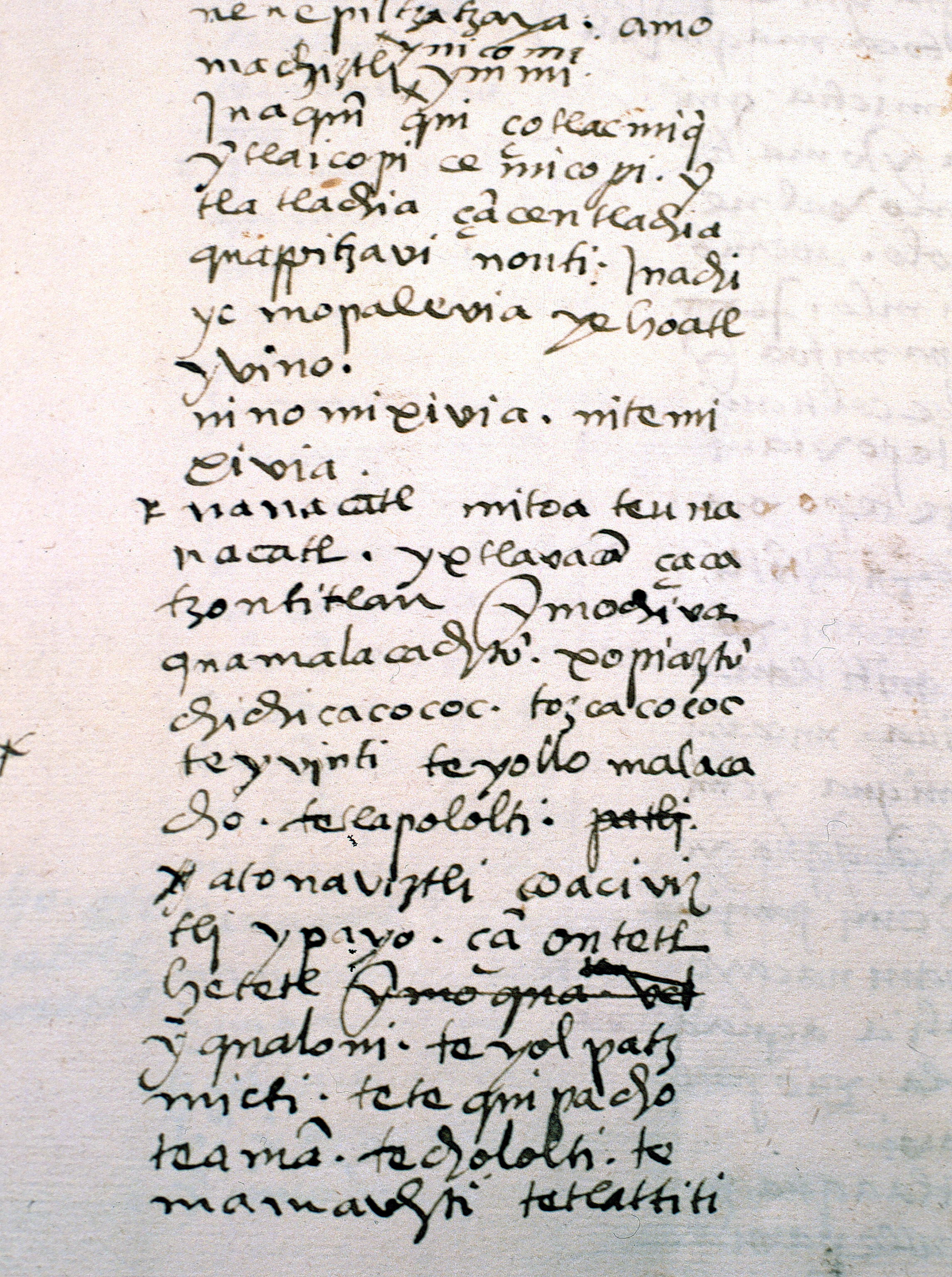 Fragmento del códice de Fray Bernardino de Sahagún escrito en lengua Nahuatl