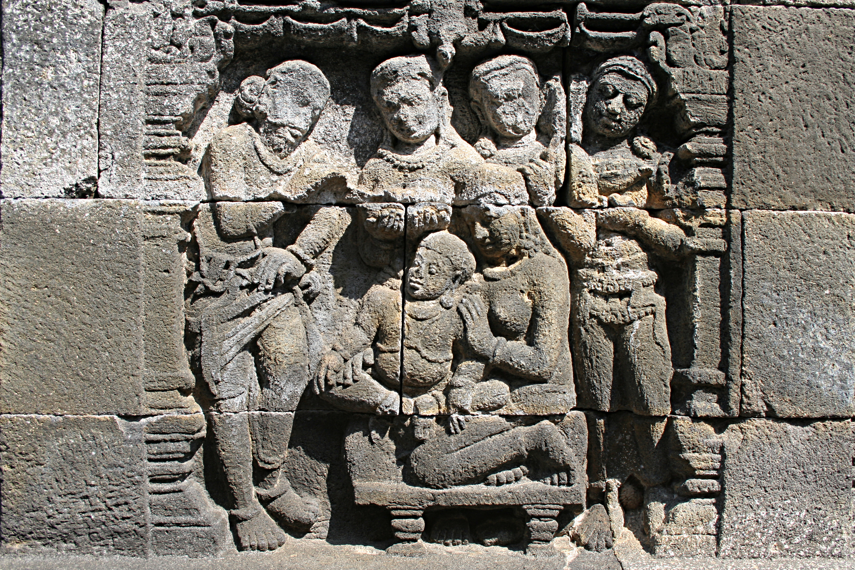 Detalle de relieves, Templo Borobudur de Jogyakarta, Indonesia