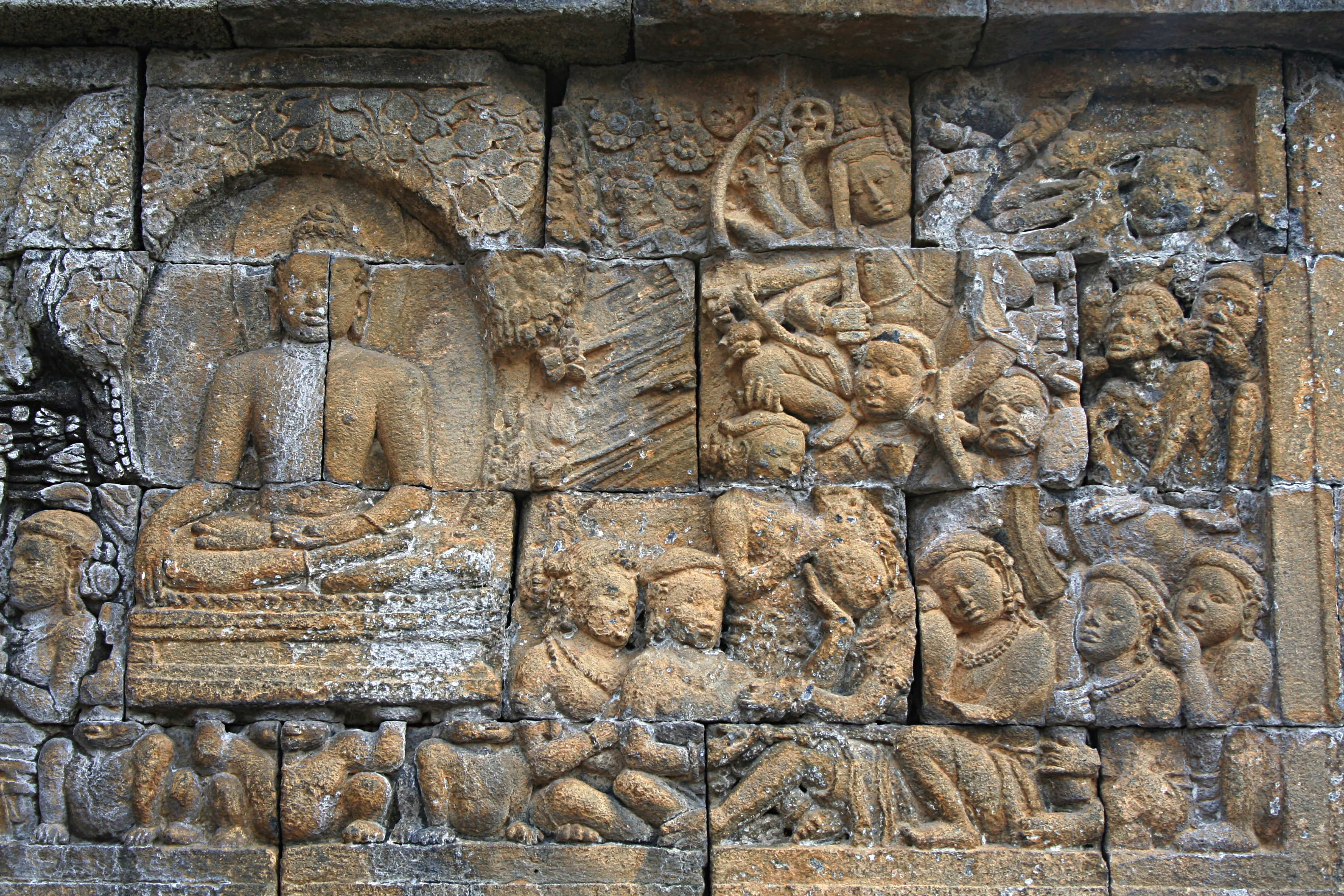 Detalle de relieves, Templo Borobudur de Jogyakarta, Indonesia