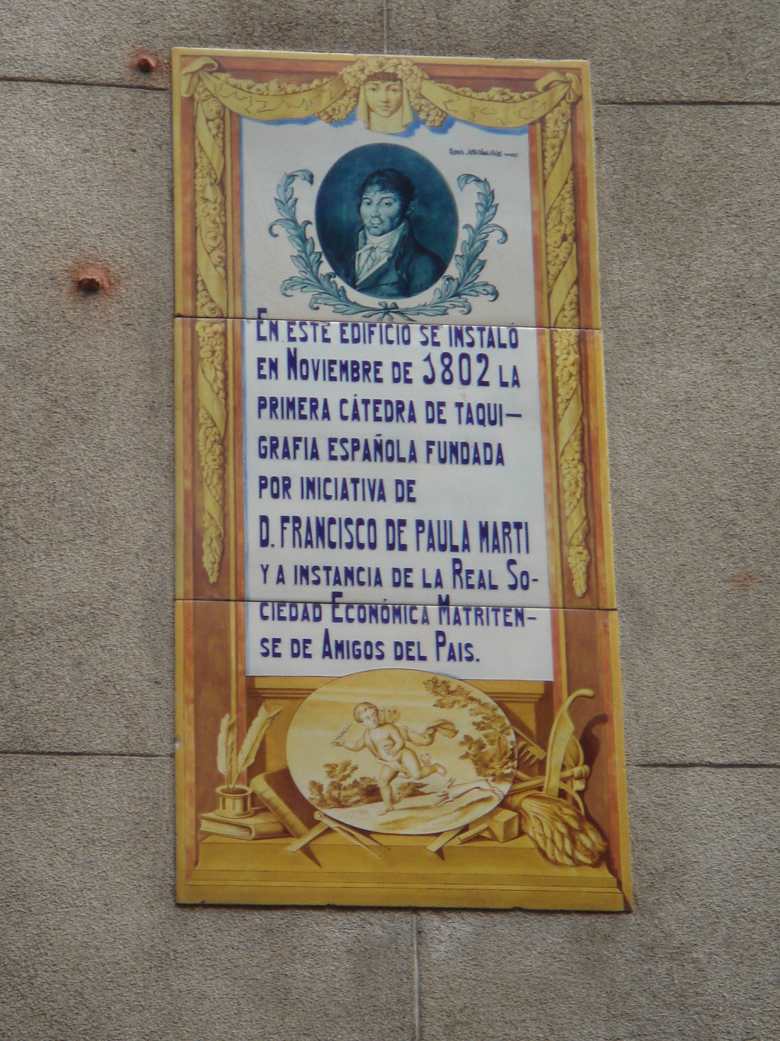 Placa en recuerdo de la primera cátedra de taquigrafía española