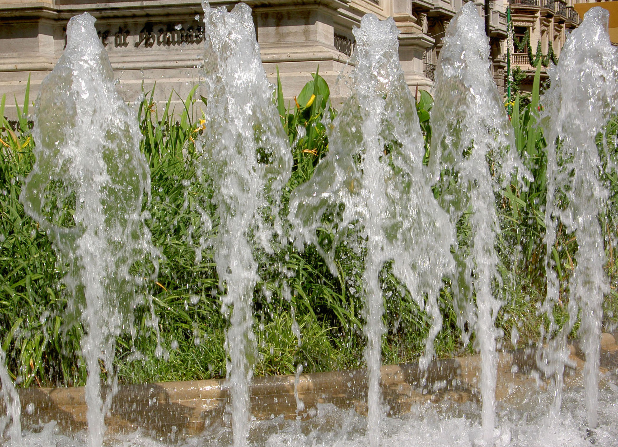 DEtalle del agua de la fuente situada en la Plaza Isabel La Católica de Granada, España.