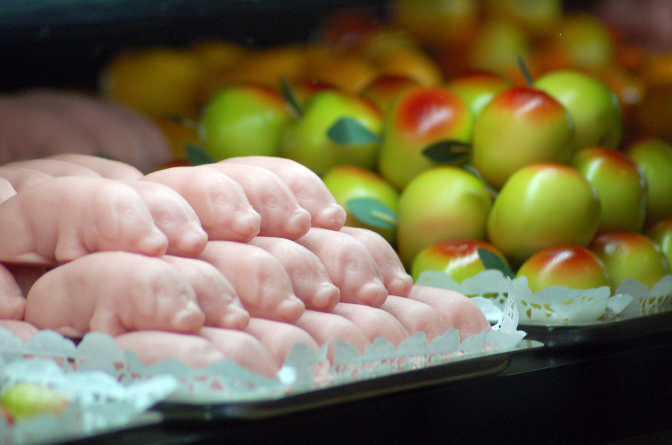 Detalle figuras de mazapán en el mercado de Bruselas, Bélgica.