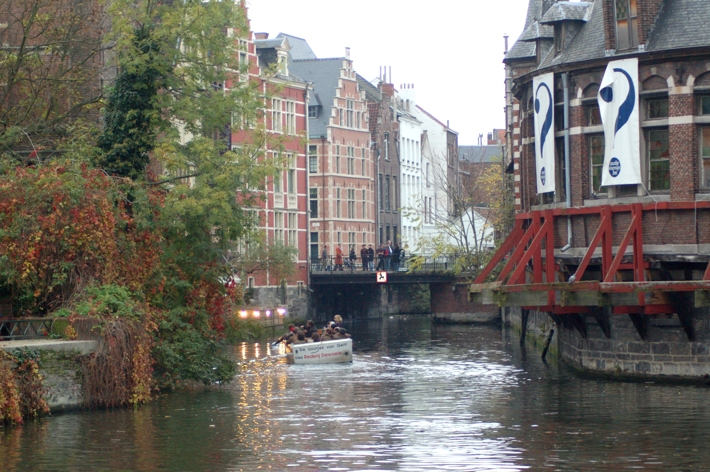 Vista del canal de Graslei y edificios en Gante, Bélgica.